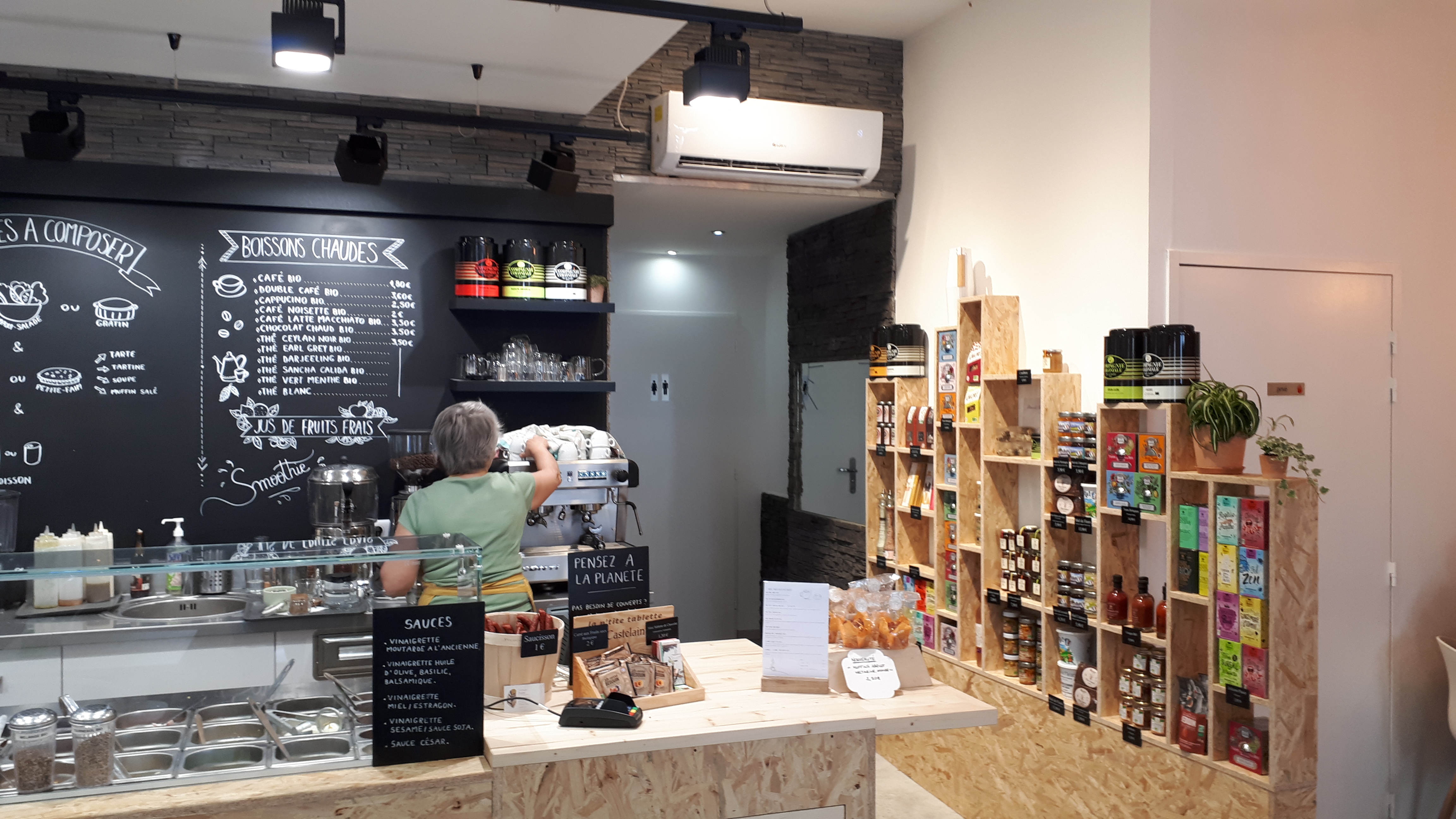 Petite boutique de restauration sympathique où tout est bio et fait maison