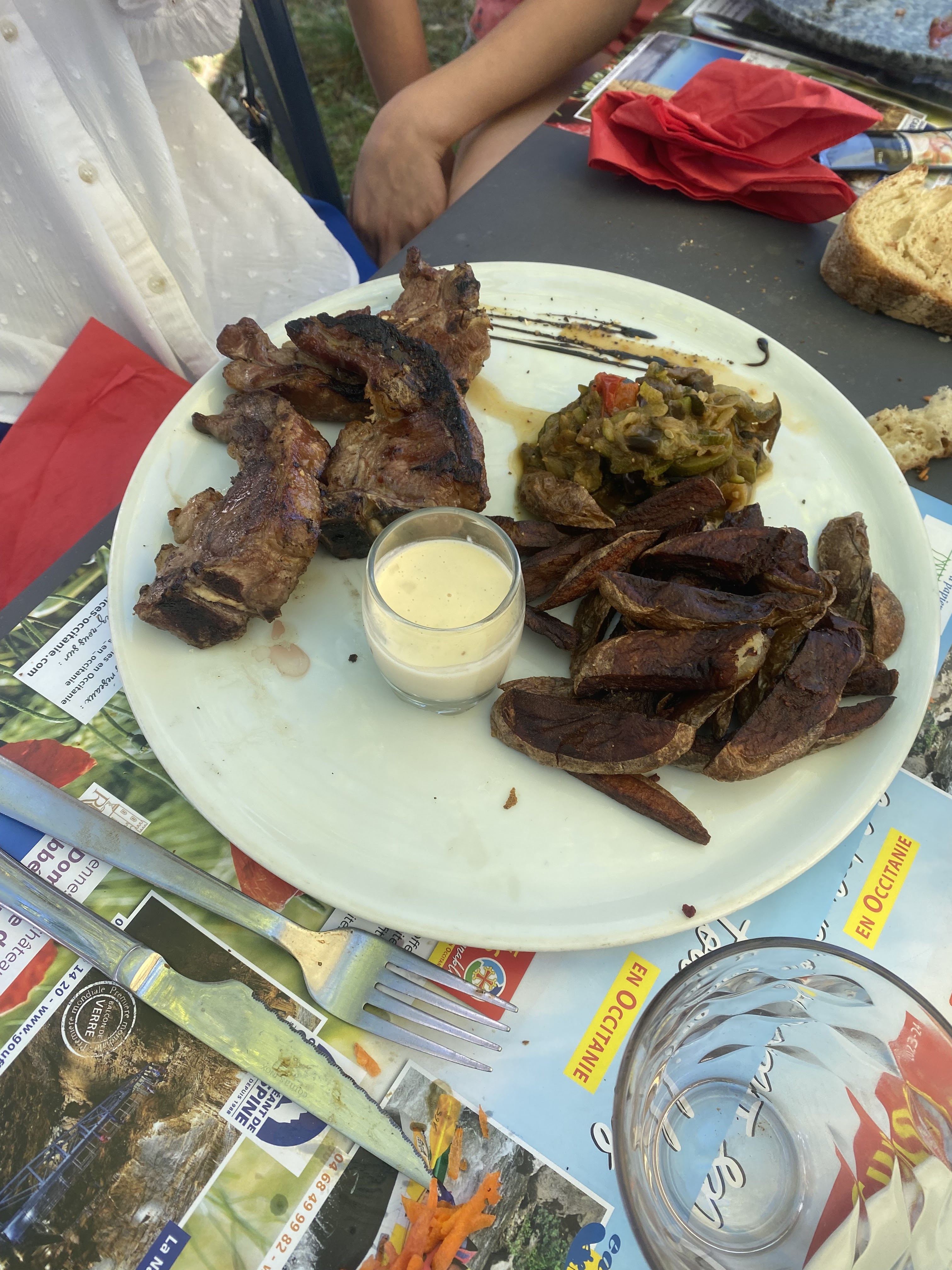 Le service est très long. Pas de sel ni de poivre sur la table alors que nous avions nos viandes. Pire encore nous n'avons pas pu être servis en vin avant la fin de nos assiettes bien que nous ayons essayé de patienter avant de manger. Ma grillade était noircie à p'usieurs endroits et avait un fort goût de fumée. Aucune excuse pour le retard apporté au au service des bo. Les frites sont surgelées. Peut-être que certains clients ne posent pas la question. Le cadre est idyllique certes mais mais le service et la cuisson des grillades laissent vraiment à désirer. Une déception pour ma famille qui venait de loin.