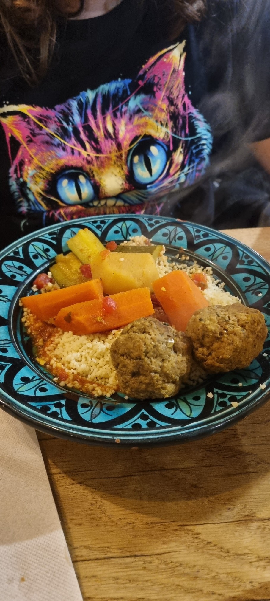 Un super moment, le tajine boulettes est excellent hyper bon. Je vous recommande sincèrement.