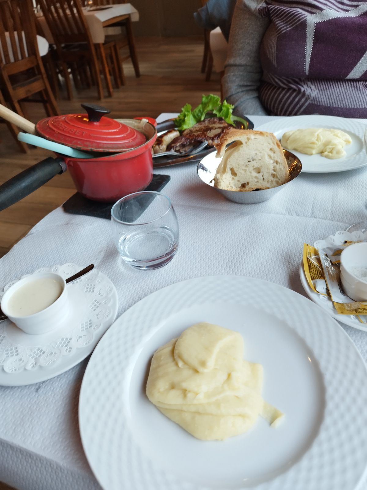 Très bon aligot mais service pas à la hauteur de la facture ,couvert non replacé après l'entrée et dressage des assiettes extrêmement simple