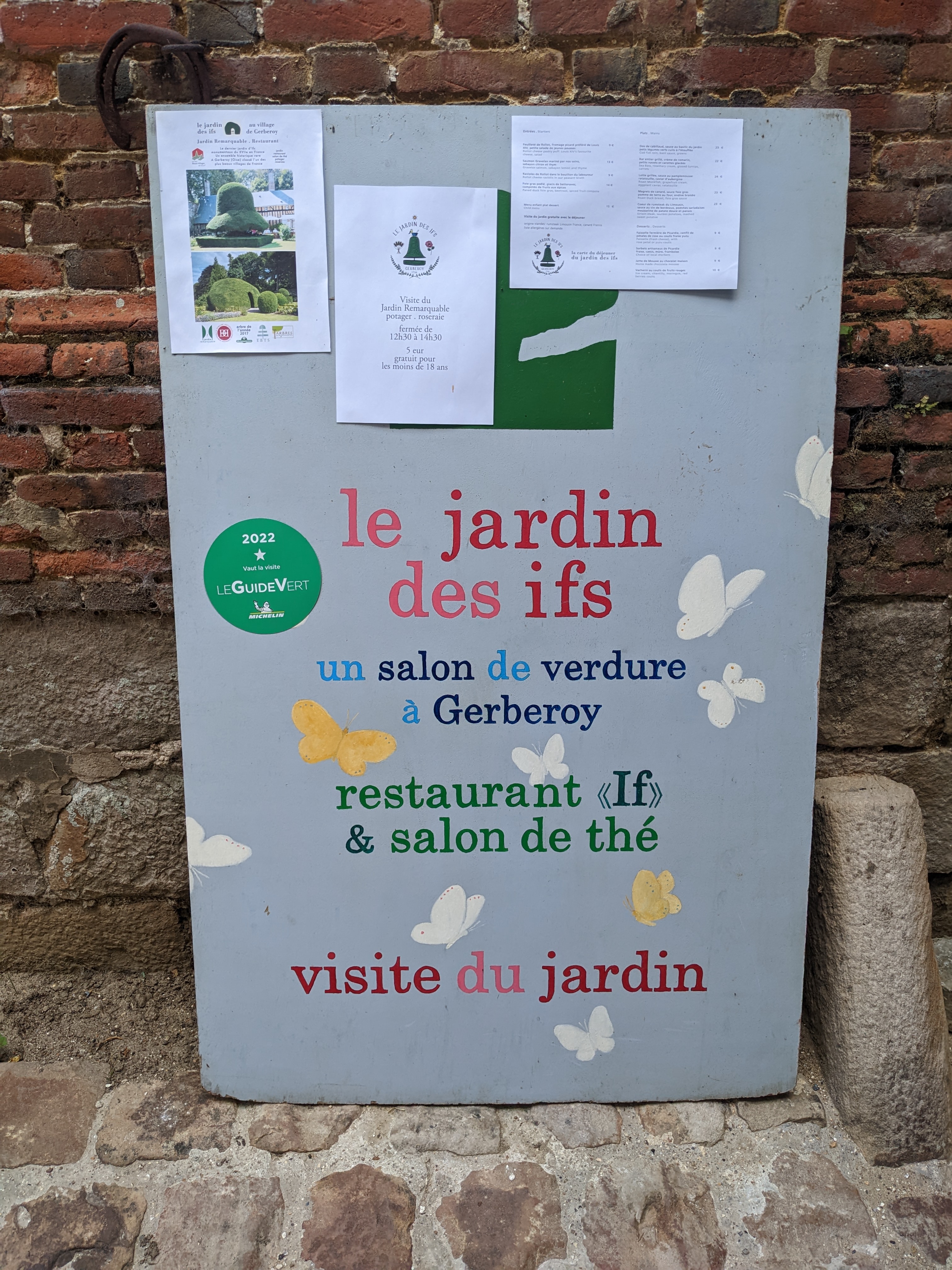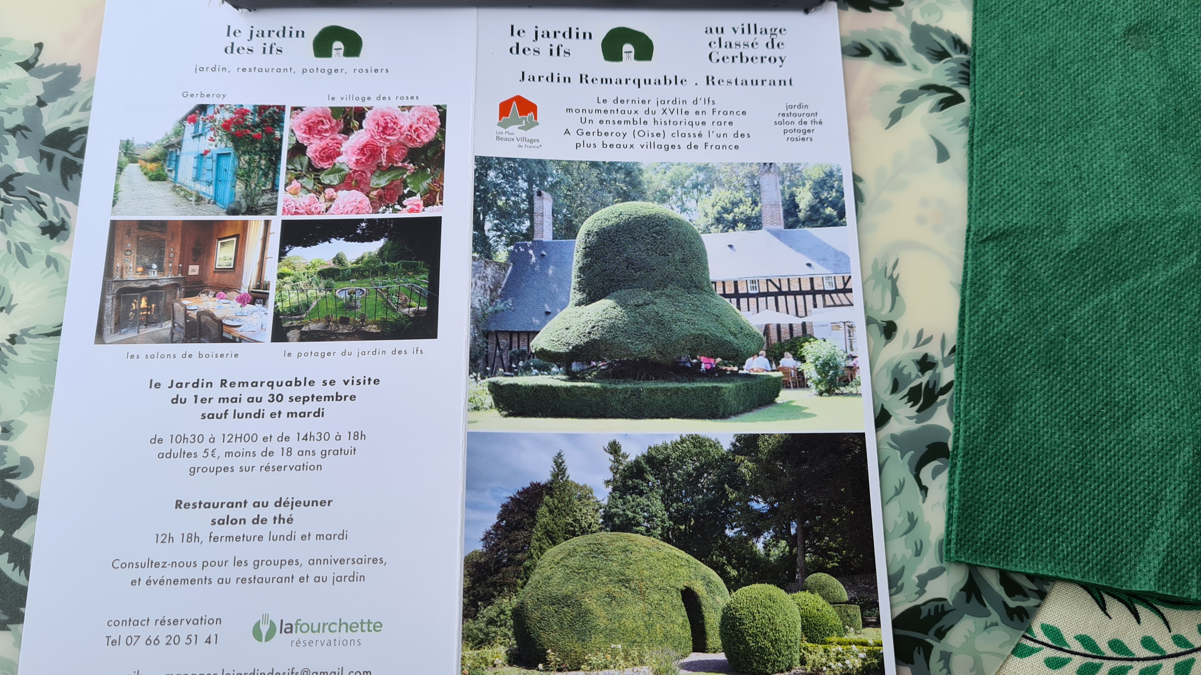 Le jardin des ifs, lieu incontournable à Gerberoy, plus beau village de France, classé jardin remarquable, accueil sympathique, excellent restaurant (chef venant d'un restaurant étoilé). Les plats sont goûteux, notamment son feuilleté au fromage Rollot, son maigret de canard, la mousse au chocolat maison, un très bon vin Brouilly. Le repas était excellent. Ce cadre paysager est magnifique et paisible. Je recommande vivement.