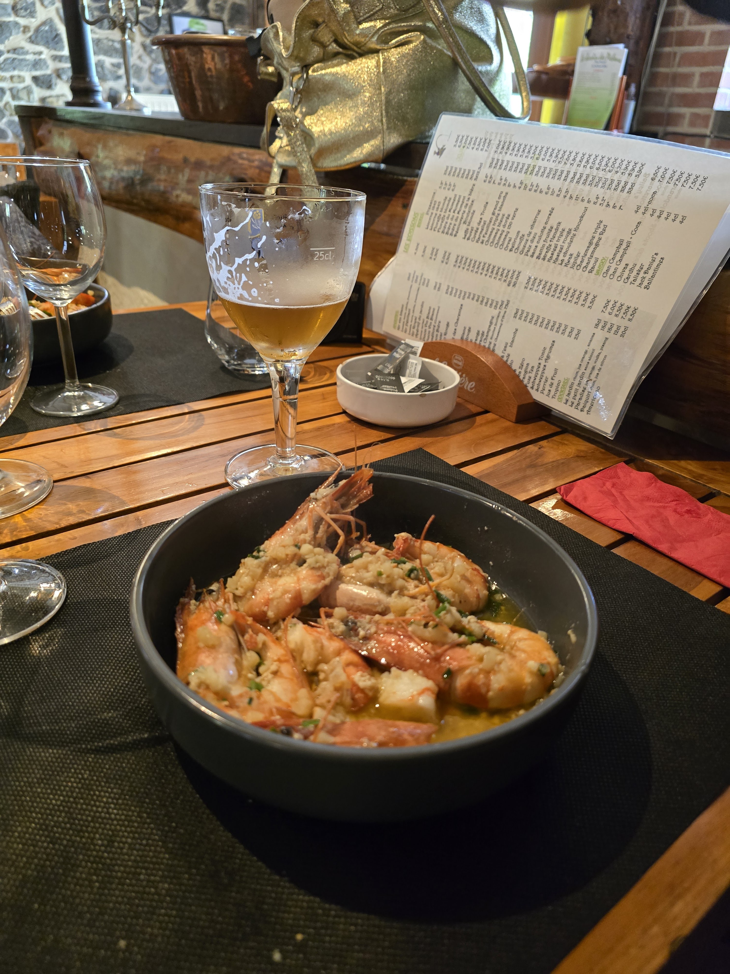 Cadre superbe, ambiance calme et agréable et surtout belle décoration ! Nous avons bien mangé pour 35 euros par personne (apéritif, entrée et plat avec boisson en repas). Plat copieux qui ne nous a pas permis de prendre de dessert, dommage ! Viande légèrement carbonisée et salade d'accompagnement pas terrible mais le tout était très bon ! Au niveau de l'amabilité, le patron (supposé) est fort agréable et disponible. La serveuse (blonde) n'a pas décroché un sourire et est assez cassante avec les clients comme avec le patron. De plus, nous avions demandé à reprendre le reste de viande et os, celle-ci a jeté la moitié et nous a emballé le reste. Un détail mais une dernière note négative... et un chien triste 😉 Belle soirée sinon !!