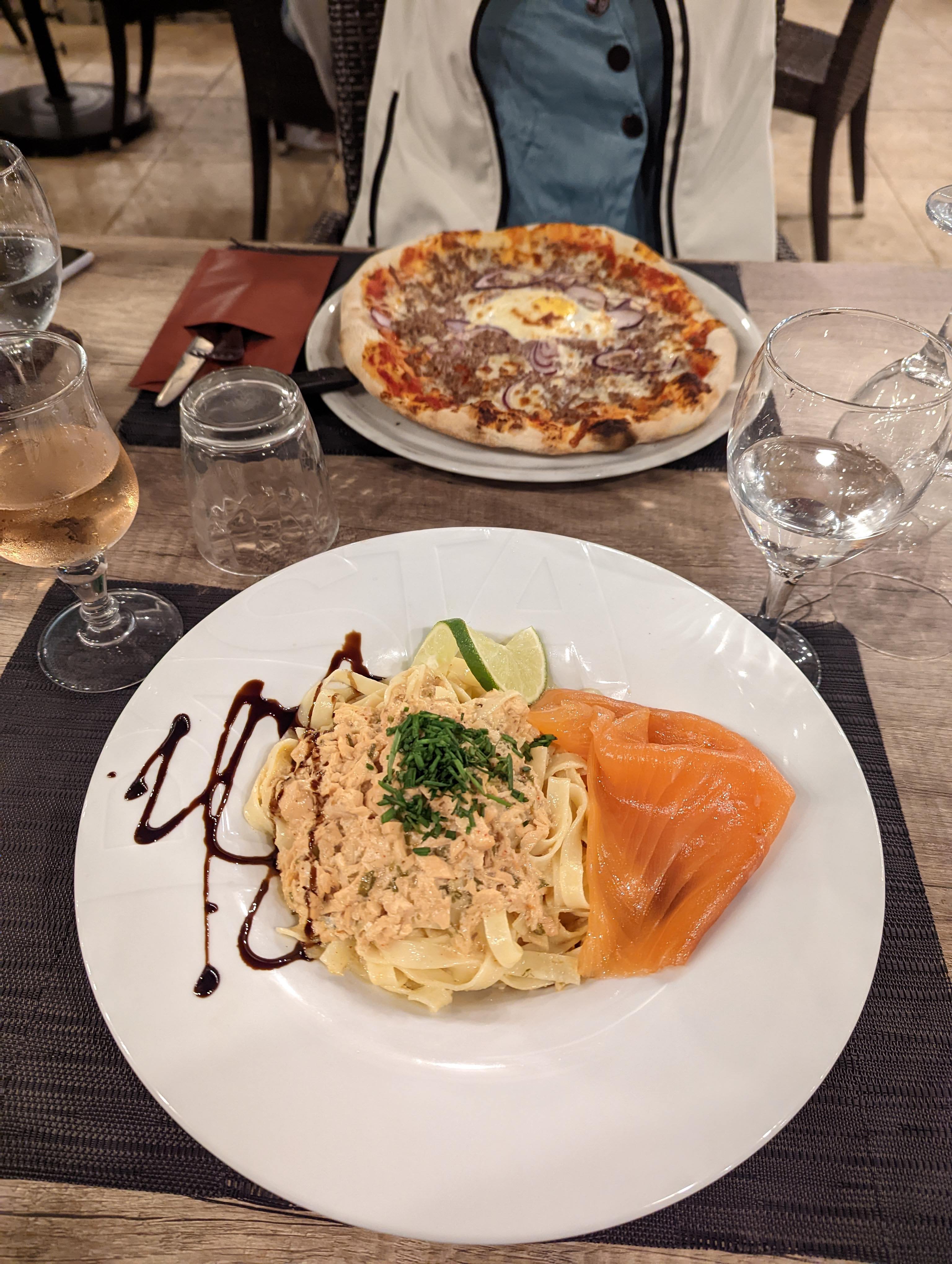 Mon Dieu. Des prix fiers, un service médiocre (boissons oubliées, la convivialité est différente) et la qualité de la nourriture est au mieux moyenne. Pizza plutôt sèche, faux filet assez correct, pâtes comme si elles sortaient d'une boîte de conserve. Honnêtement : je préfère soutenir les restaurants locaux à Ramatuelle/Gassin.