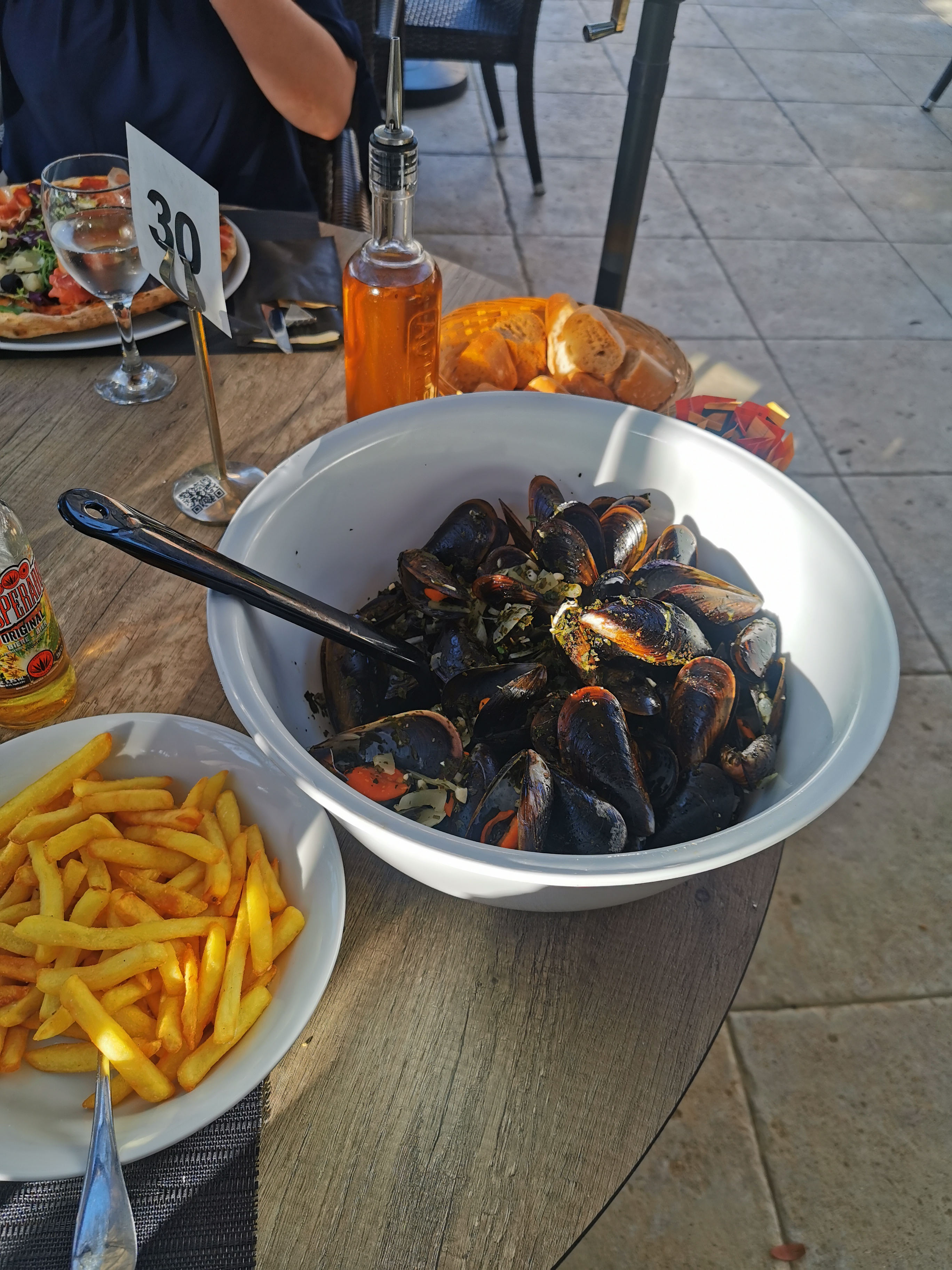 Comme décrit dans d' autres commentaires, que nous aurions du lire avant, la nourriture est digne d'une cantine. Moules à gogo,nous ne nous sommes pas resservis et n'avons même pas fini les frites.. Nous avions aussi pris des pizzas à emporter qq jours plus tôt, ça aurait dû nous suffire pour ne pas essayer le restaurant... (Le service était très bien par contre) Dommage car le camping est vraiment top. Aucune concurrence proche du camping c'est peut-être la raison....