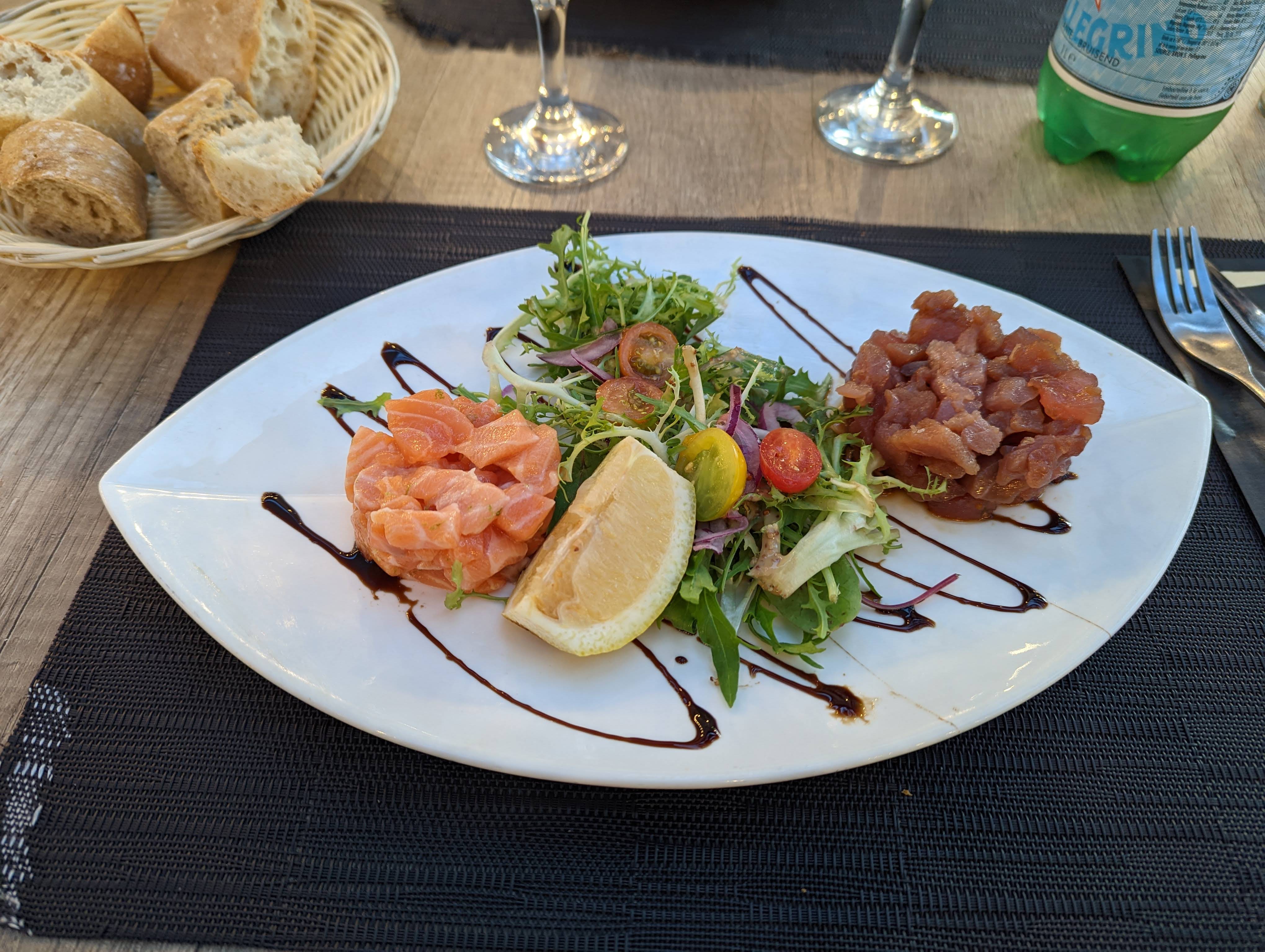 Un restaurant qui est en fait plutôt correct et qui semble plutôt correct à première vue. MAIS : Le service est grossier et incompétent ! Nous étions six et pourtant nous n'avions apporté que quatre de tout. Quatre menus, quatre assiettes, etc. De toute façon, seules les pizzas étaient mangeables. Répondre aux moindres demandes spéciales a submergé la cuisine et le personnel au-delà de toute mesure. Lorsque nous avons eu une petite demande supplémentaire pour une pizza, des pâtes ont été apportées sans raison. Sans que nous les ayons commandés. Oh, et je ne ferais pas confiance au parmesan. Il y a de la moisissure sur la table. Mais apparemment le restaurant ne se soucie pas du bien-être de ses convives en vacances. De plus, même payer a pris tellement de temps que nous avons juste pensé à partir. Avec ce niveau d’incompétence, cela n’aurait probablement pas été remarqué de toute façon.
