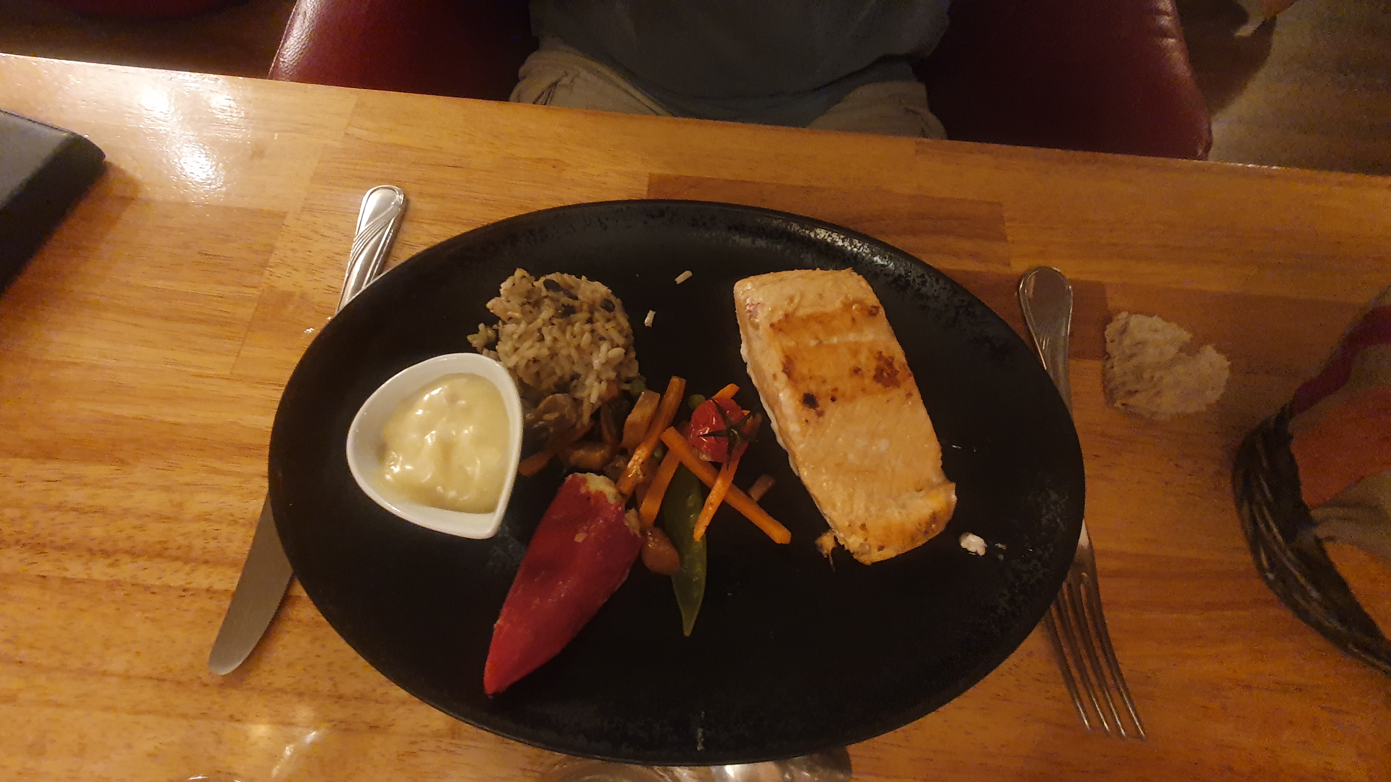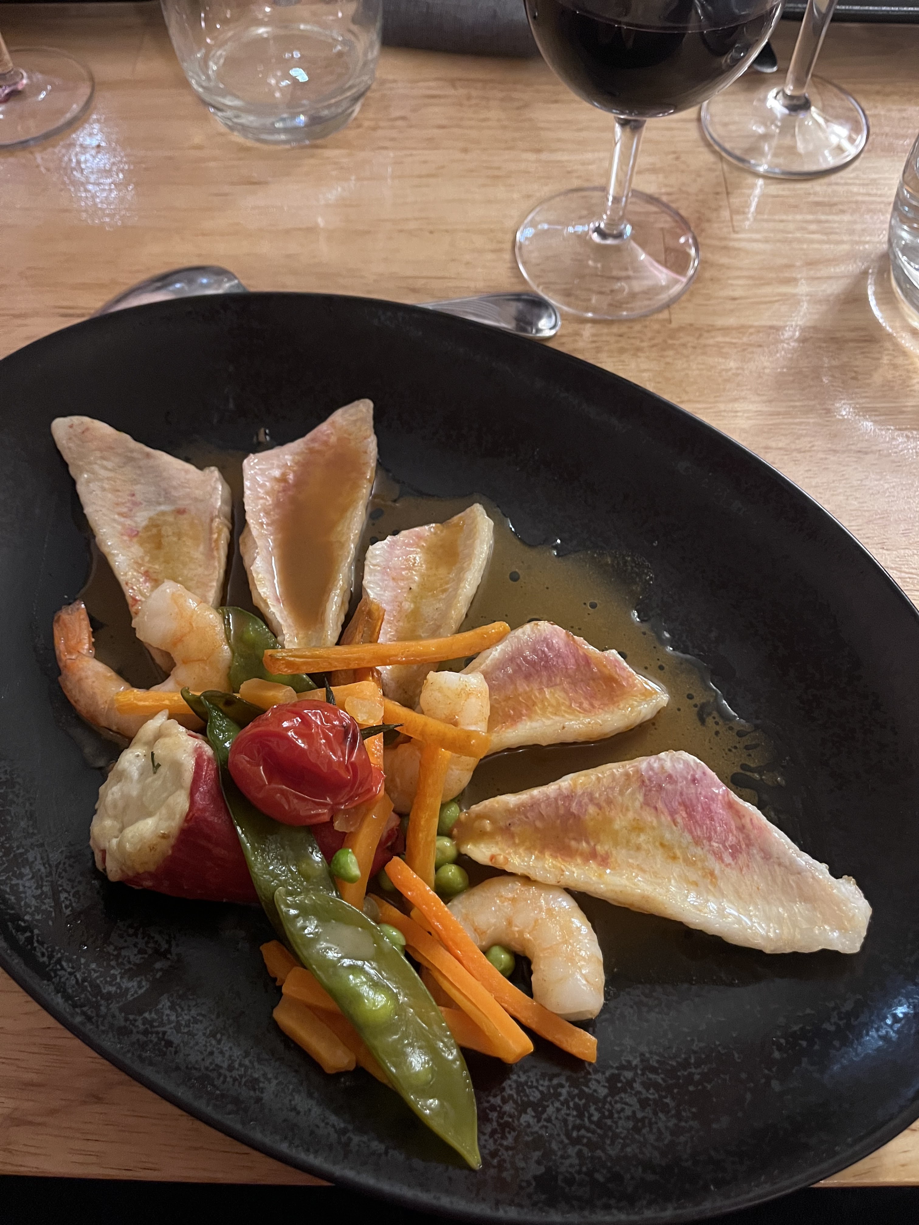 Cuisine et produits de qualité, assiettes soignées. Par contre, on nous a servi l'entrée alors qu'on venait juste de nous servir l'apéritif ? Heureusement que c'était froid...je n'ai pas trop apprécié. L'entrée était très bonne et copieuse. Par contre mes filets de rouget malheureusement trop cuits donc secs, le riz aux champignons les accompagnant était délicieux ! Par contre je n'ai pas aimé le poivron farci avec une sorte de brandade (?) J'aurais préféré du fromage frais dedans mais ça c'est une question de goût. (D'ailleurs on ne nous a pas expliqué les plats au moment de servir) Mon ami avait du saumon, très bon et fondant, mais son aïoli était raté et huileux...bifbof... Heureusement nous avons fini sur une bonne note avec le dessert, mangue ananas excellent ! Nous reviendrons sans doute, pour voir côté viande...