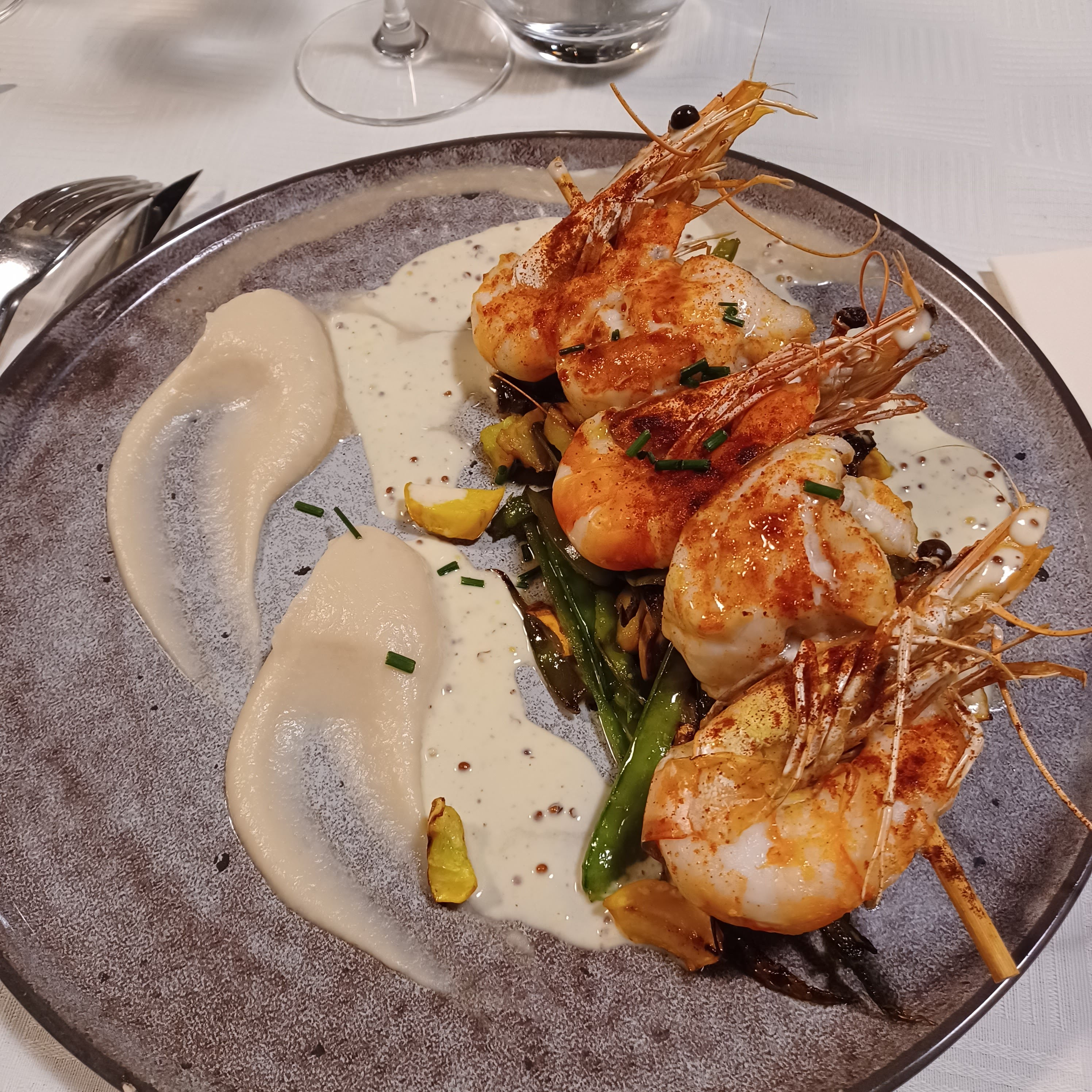 Superbe pour un repas d'affaires. Tarte tatin butternut en entrée, gambas et Saint Jacques, crumble raisin en dessert. Service efficace, restaurant propre et accueillant. Je recommande !