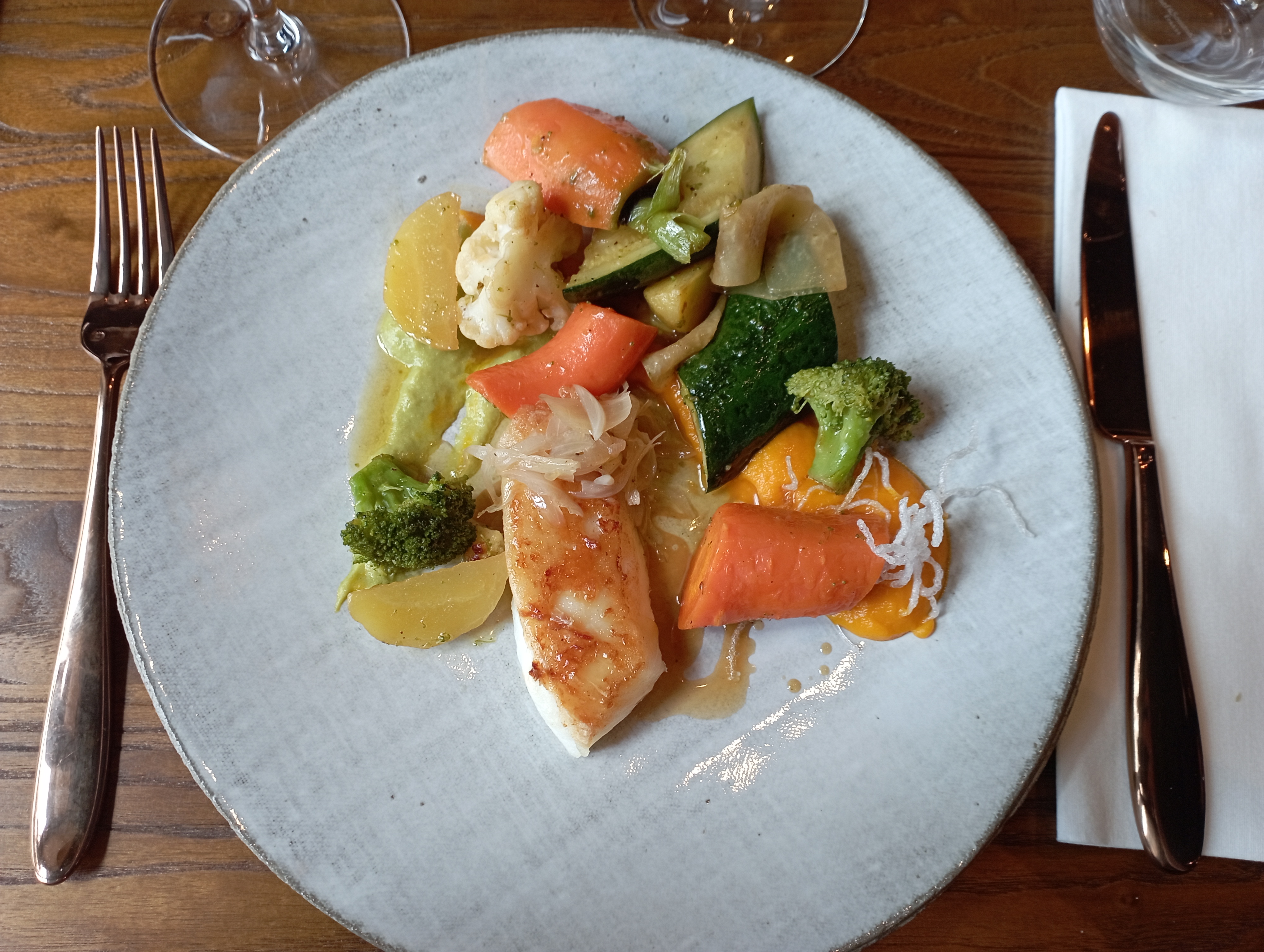 La lotte était cuite à la perfection, avec ses petits légumes, betterave cuite, juste une tuerie. Les conseils sur le vin étaient aussi très intéressants et après avoir goûté, aussi très justes. Petit bémol, mais pour cause des mes goûts personnels, sur le place du paleron en entrée.