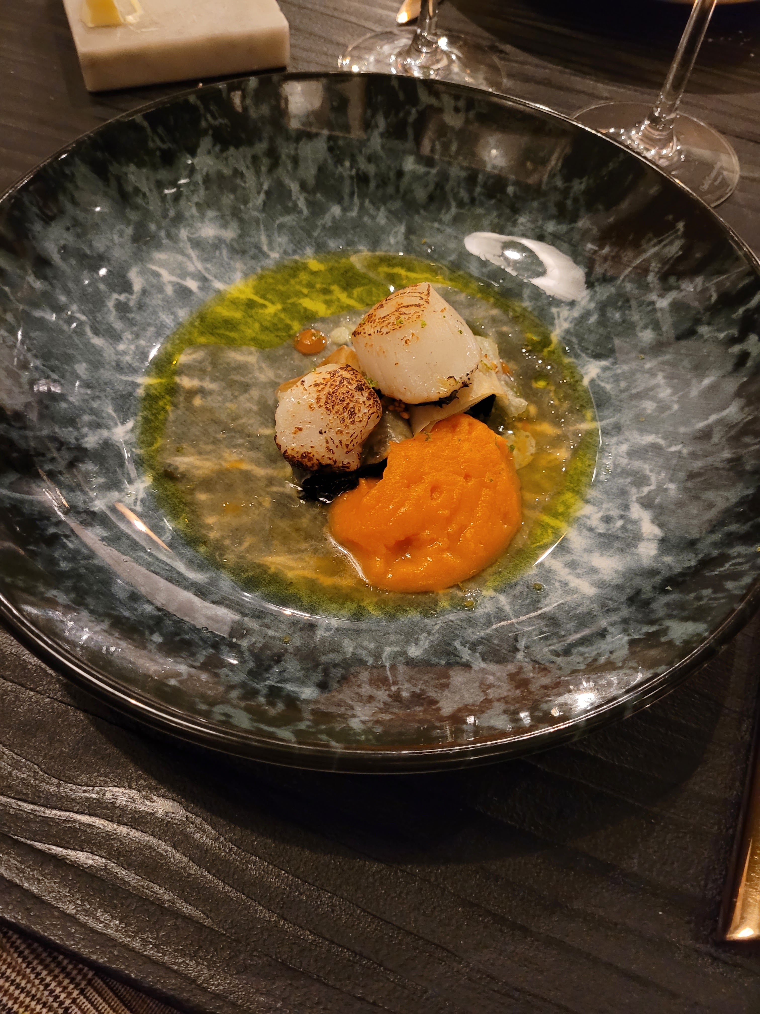 La décoration du restaurant est de grande qualité .. mais .. Le service est très(trop) lent .. 3h de présence pour un déjeuner.. Les produits sont de qualité mais manque d’accompagnement.. une langoustine… un poisson servi sans sauce.. Il manque encore de fondamentaux pour être considéré comme un restaurant gastronomique permettant de justifier le tarif.