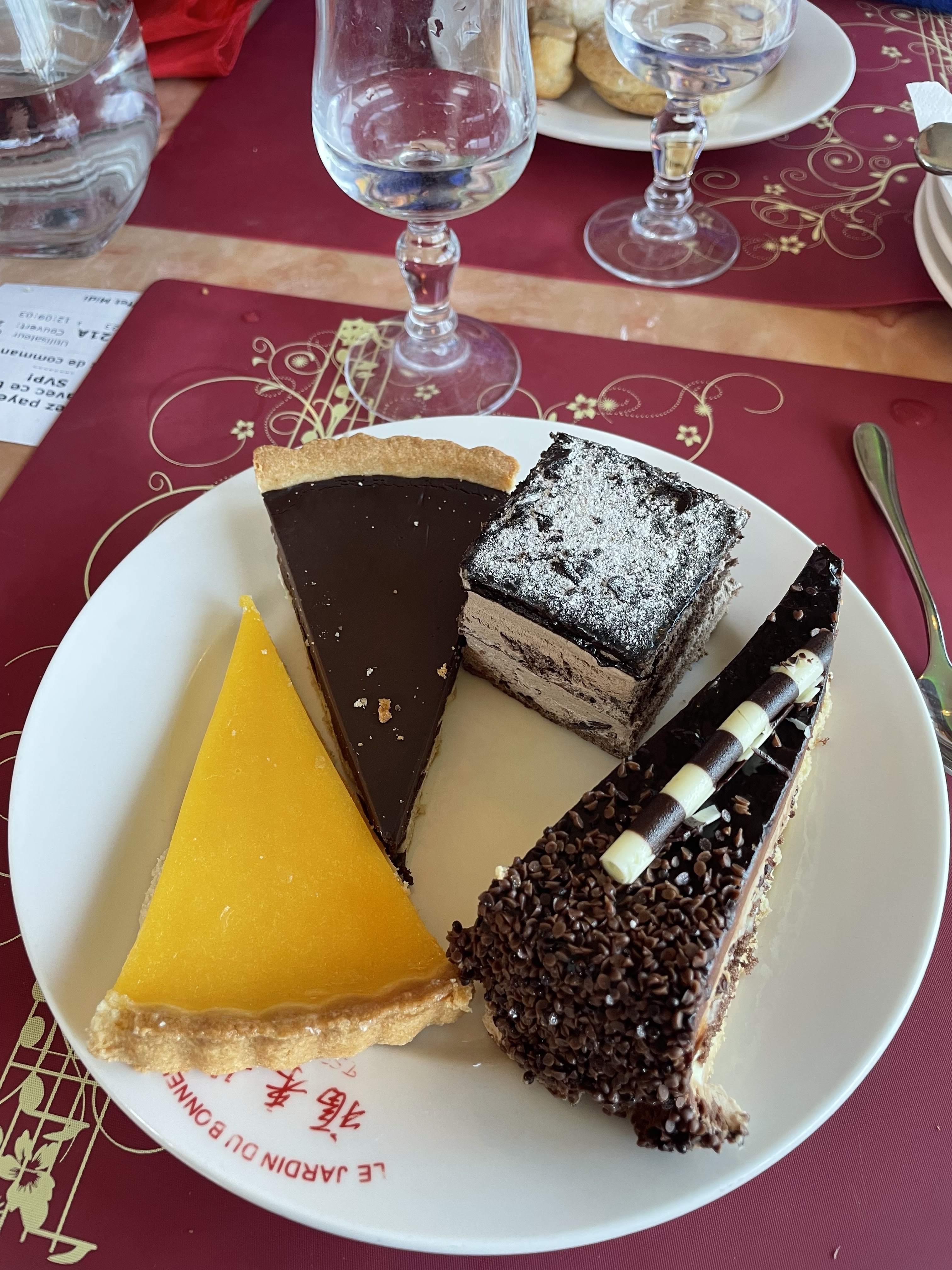 Il faudrait l appelé le j ardin de l oreur découverte surprenante très sale,les verre,les carraffes d eau le sole un peu plus et vous restez coller les pieds des tables et j en passe quand au buffet médiocre même si les pâtisseries ne sont pas encore décongeler enfin déçu à tous les niveaux