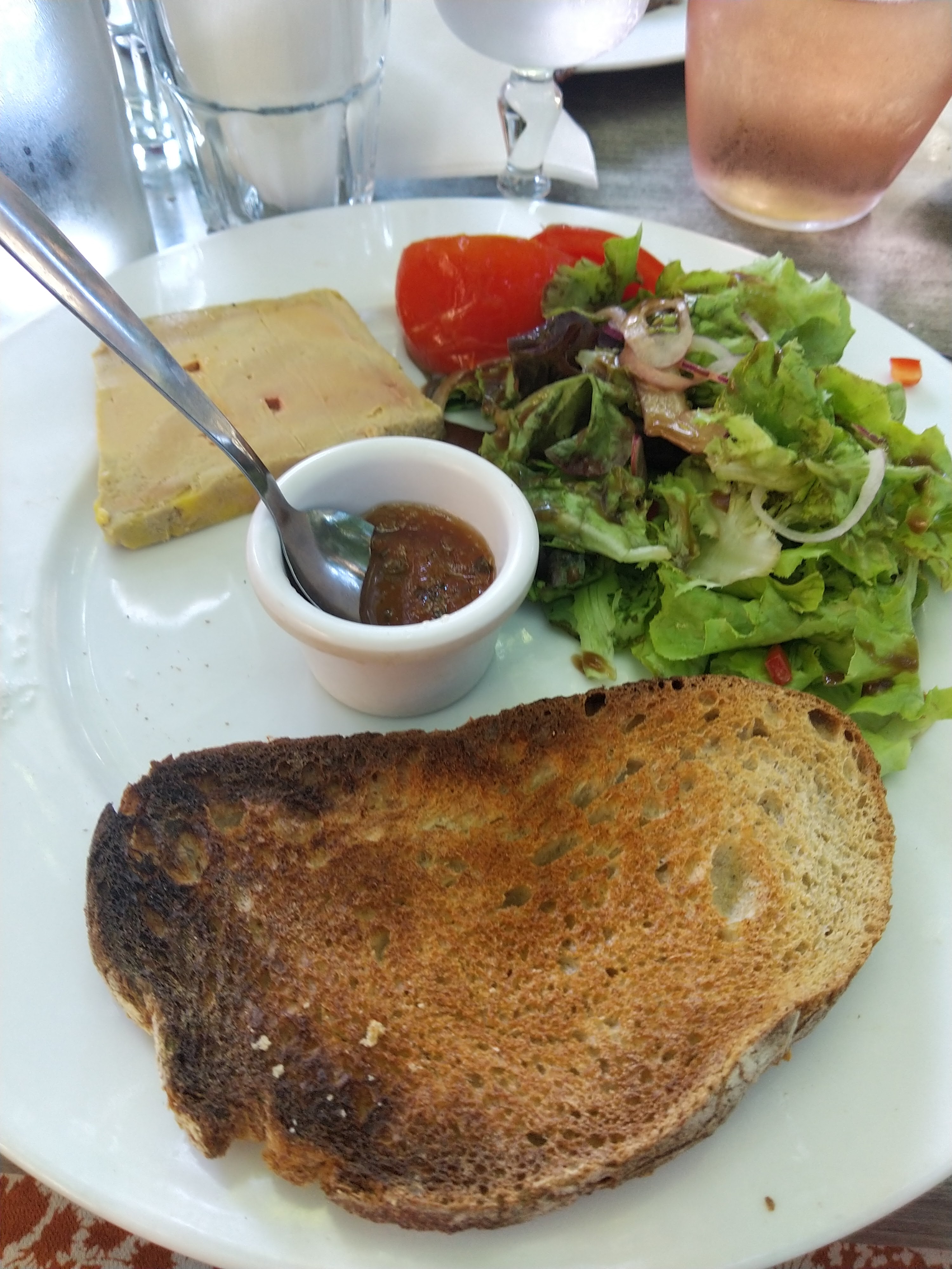 Nous étions de passage sur Carcassonne en ce week-end de Pâques, nous avons voulu manger à un endroit sympathique dans la cité et nous avons donc cherché l’un des mieux noté sur Google et avons donc choisi celui-ci et qu’elle déception !! Les serveurs autant la fille que les garçons ne sont pas au top, passent devant sans prendre nos assiettes alors que nous avions fini l’entrée depuis 20 mins et qu’ils passaient devant nous à plusieurs reprises, et la nourriture.. rien de fou, jambon de pays de supermarché, le foie gras était bon, entrecôte pas très tendre, fondant au chocolat surgelé.. nous nous attendions à mieux.