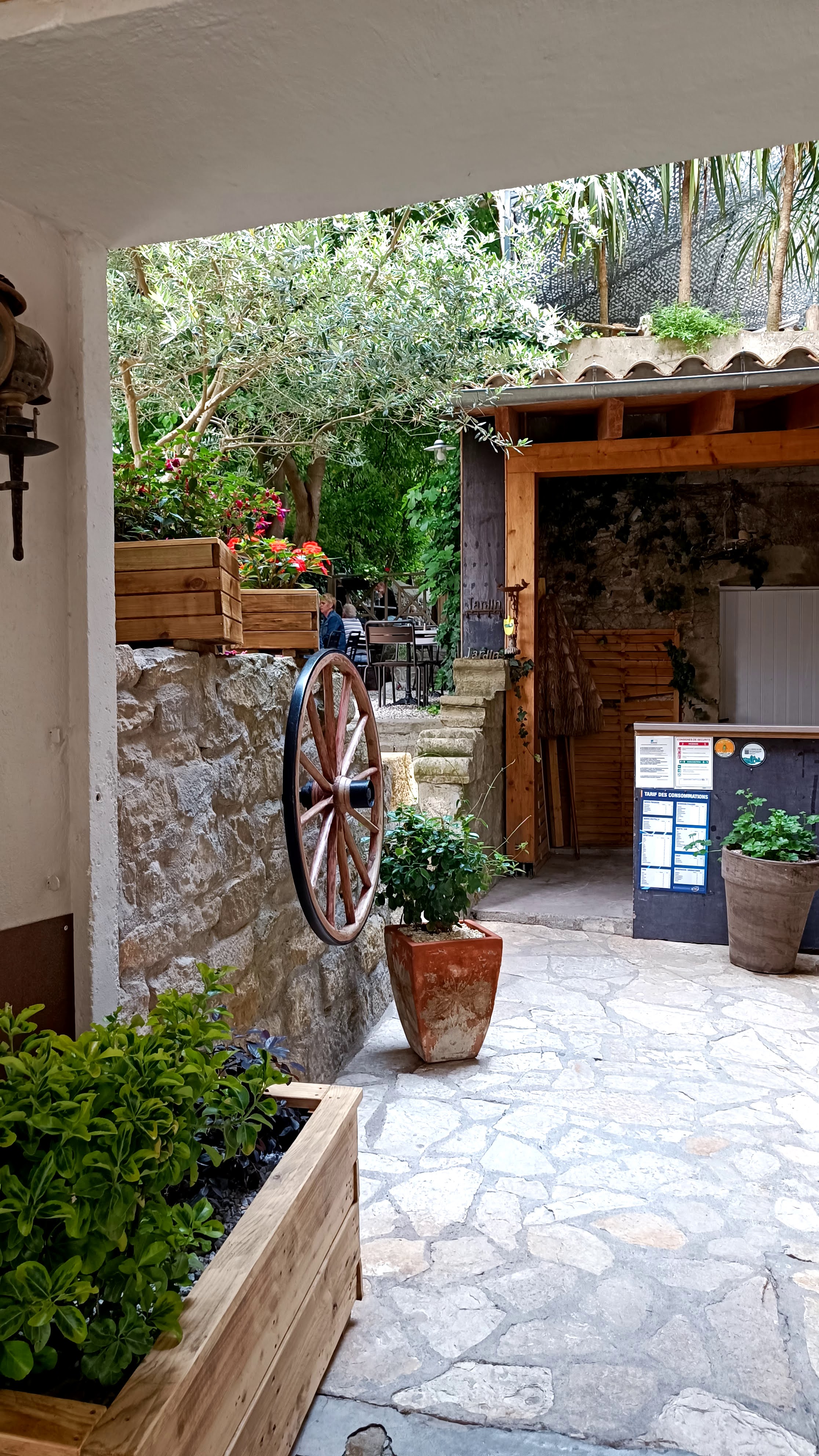 Un super restaurant, terrasse ombragée et aérée dans une petite cours discrète qu'on découvre qu'une fois à l'intérieur. Menu à 18,50 euros très copieux, avec des plats locaux excellents ! Une très bonne organisation, avec des serveurs dynamiques et très agréables.
