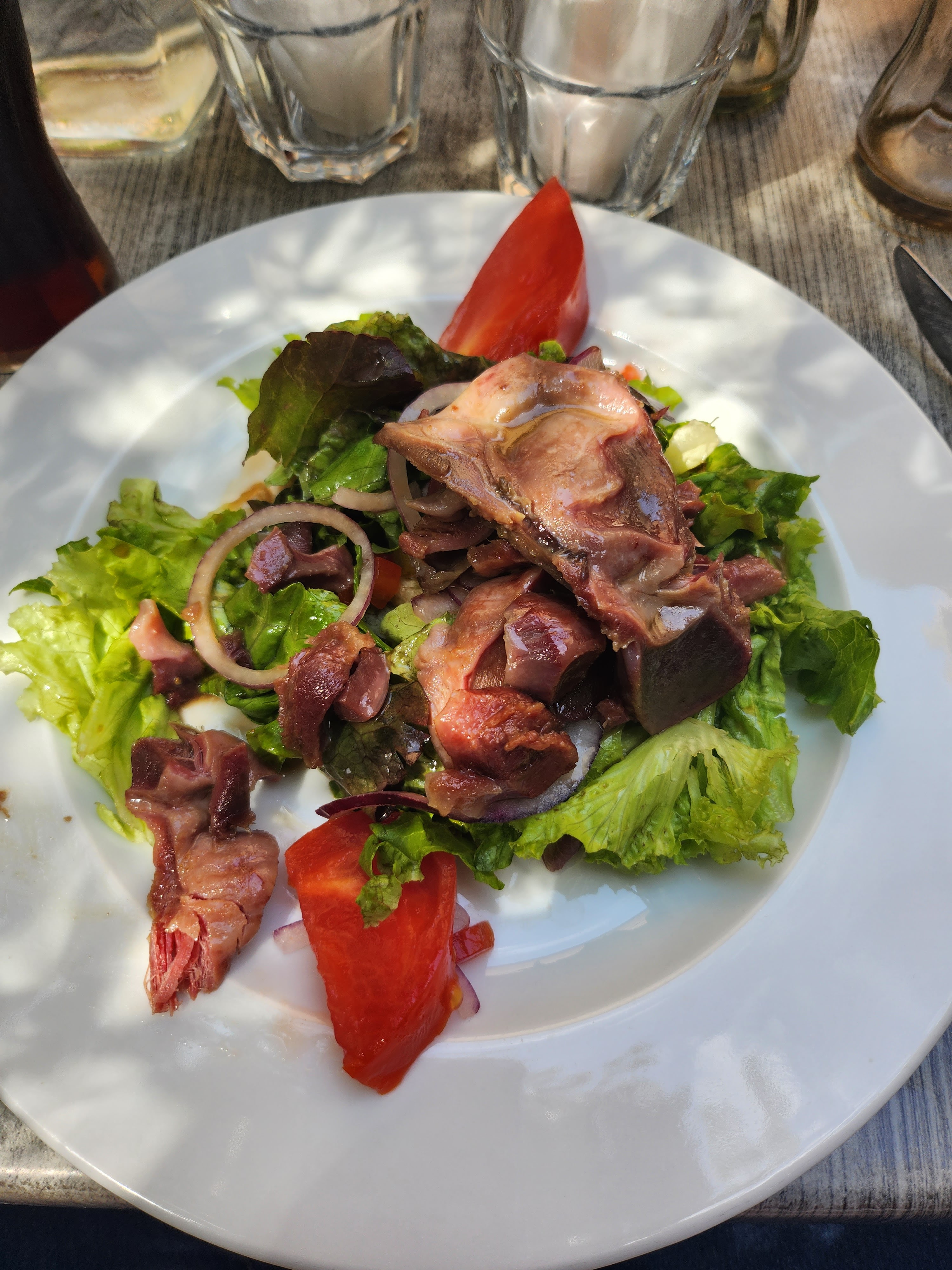 Je conseille ce lieu pour sa cuisine, car il est vrai que c'était très bon, pour un bon rapport qualité prix , en menu. Cependant, nous avons été déçu du service... Même proche de la fermeture, il faudrait garder un certain professionnalisme... Nous avons été placé à la seule table où il y avait du soleil... Sous 35 degres, mon conjoint ne se sentant pas très bien a demandé à bouger pour manger le dessert à l'ombre... On lui a répondu ''non ce serait salir une table propre'' , combien de temps ça prend de nettoyer une table franchement ? ... bref, j'ai proposé à mon conjoint de se décaler à ma place pour qu'il se sente mieux. Les employés étaient pressés de finir, ce que je peux comprendre, mais venir et couper les personnes en train de manger pour les faire payer c'est pas très professionnel non plus... Dès le début, nous avions l'impression de déranger les serveurs qui faisaient tout simplement leur travail. Dommage mais ce ne sera pas une adresse que je conseillerai sur Carcassonne, le service est tout aussi important dans un restaurant.