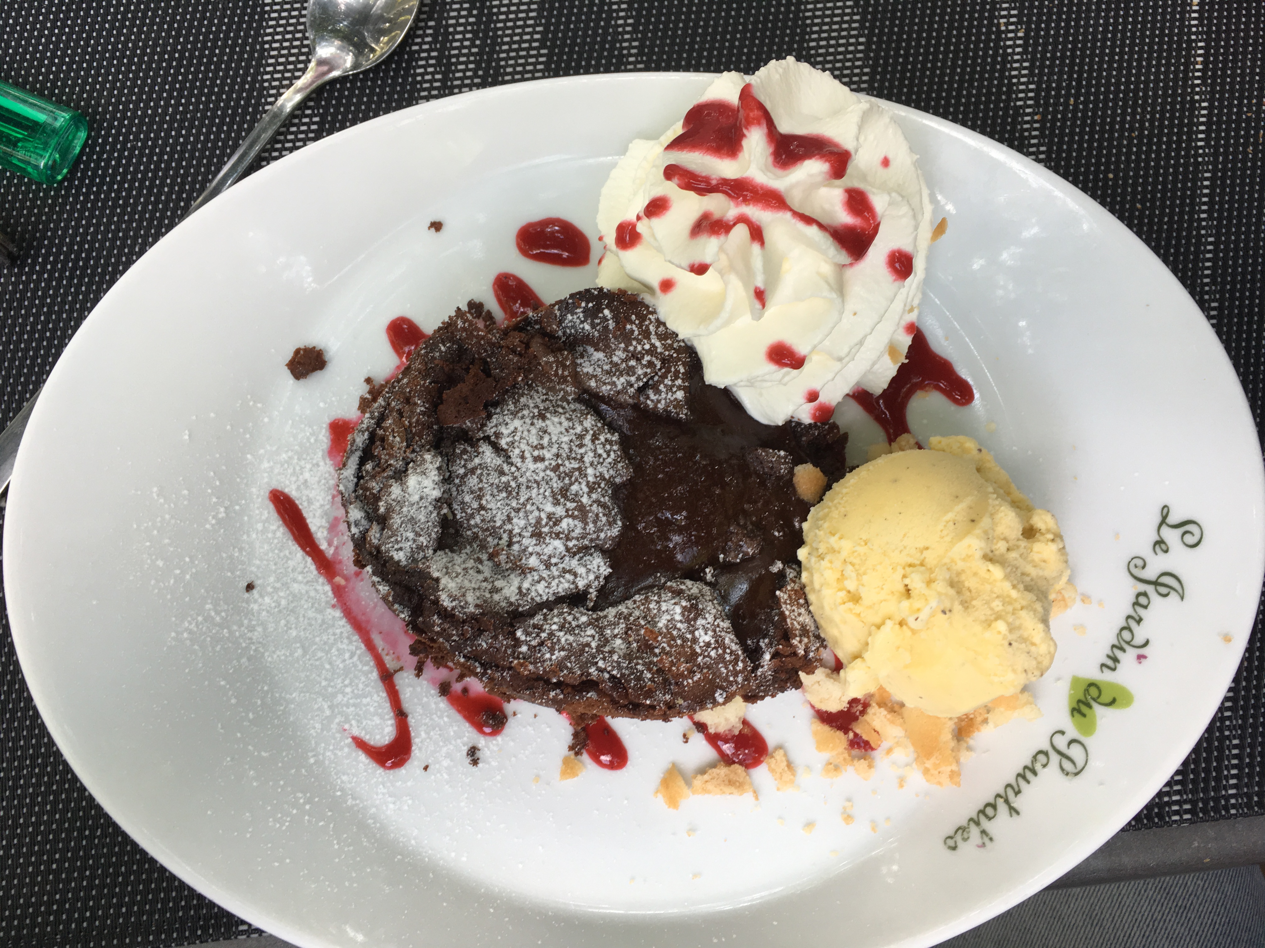 Café liégeois sans café :-(, seulement une boule de glace mais beaucoup de chantilly prêt et sauce de chocolat