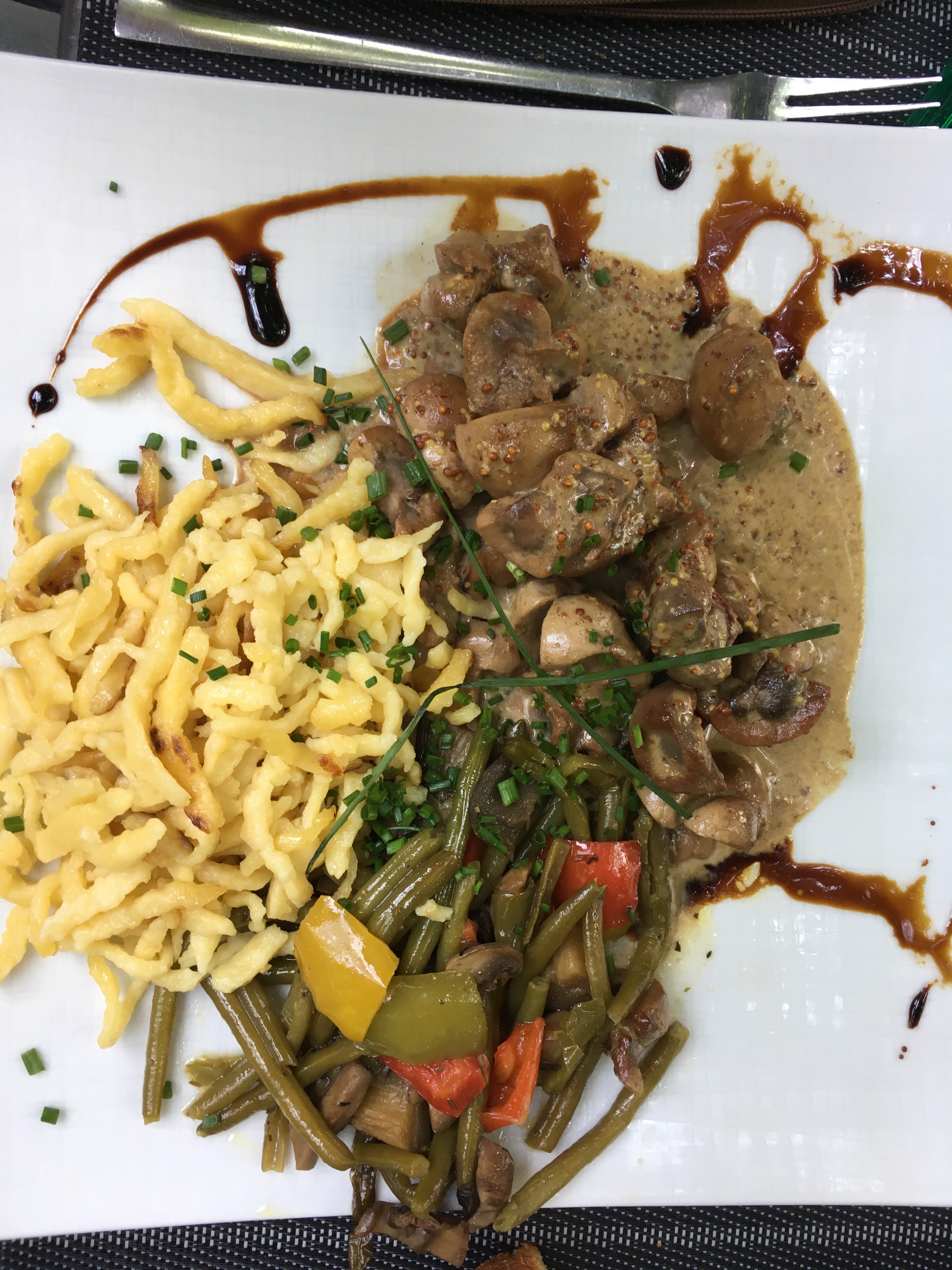 Nul sur toute la ligne 200 grammes de spaetzle et 200 grammes de rognons + une Carola d'un litre pour 2 personnes le tout pour 45 euros ah! J'oubliais quelques morceaux de pain pour la sauce j'appelle cela du foutage de gueule malheureusement j'étais invité sans quoi j'aurais probablement très mal réagi