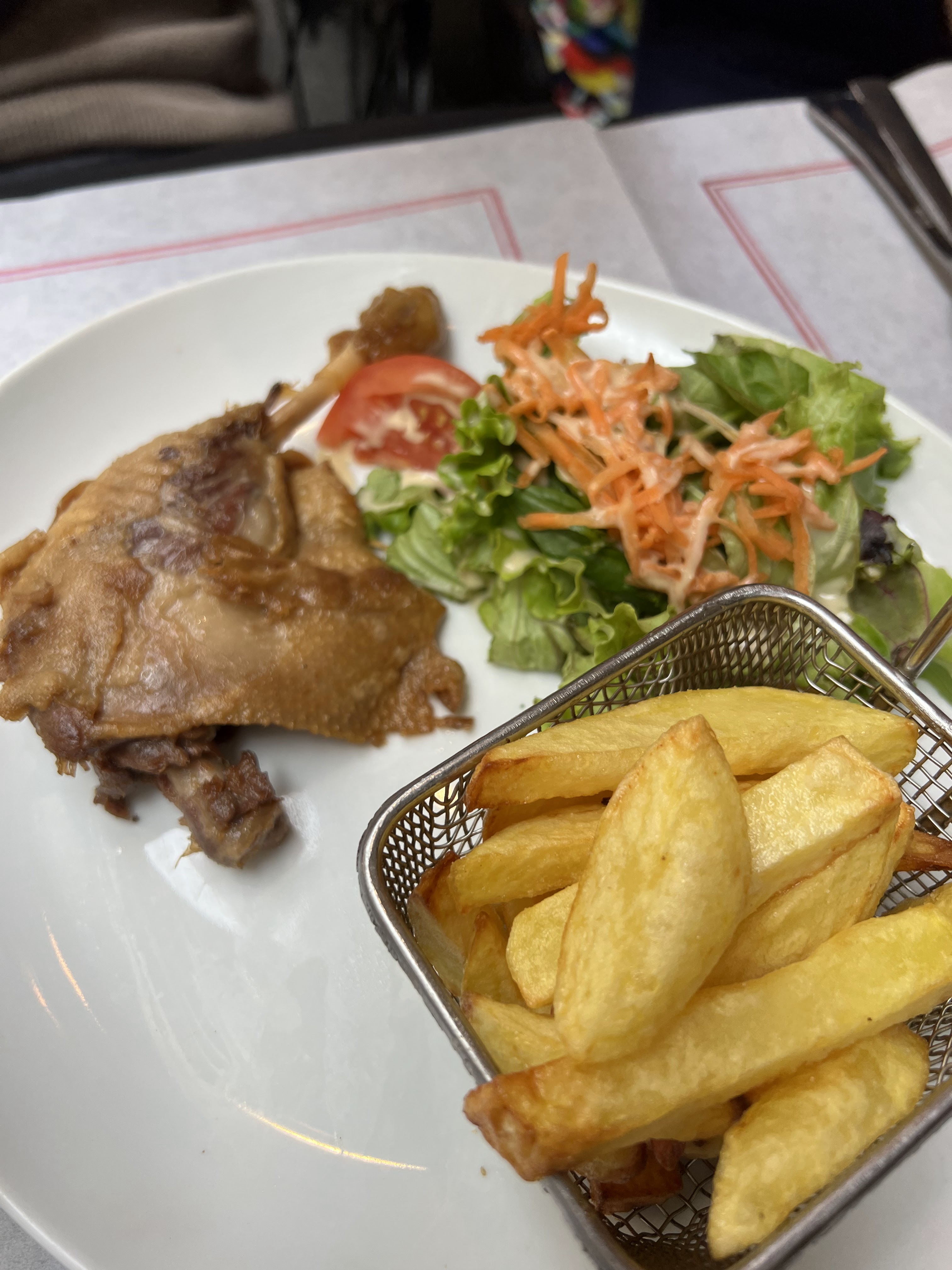 le menu classique à 3 plats pour un prix très abordable dans un quartier animé de la ville. la nourriture était bonne. les escargots étaient à l'ail. le canard était savoureux et la purée de pommes de terre était douce et moelleuse avec quelques morceaux de pomme de terre, ce que j'ai bien aimé. les portions ne sont pas trop grosses, mais suffisantes pour vous rassasier. j'ai eu une salade de fruits en dessert, qui était très simple. le service était excellent, le personnel adorable