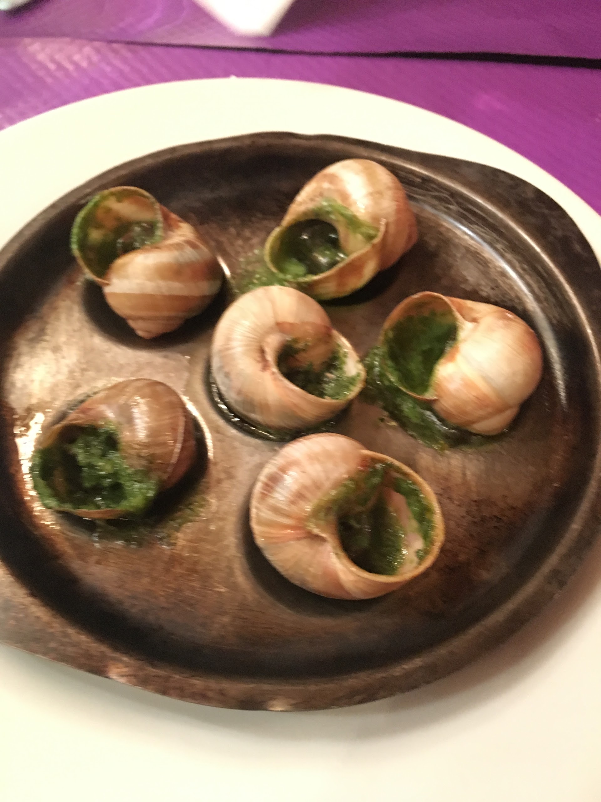 J'ai essayé des escargots pour la première fois. Ça a le goût du pesto. Bel emplacement, bonne ambiance, bonne nourriture.