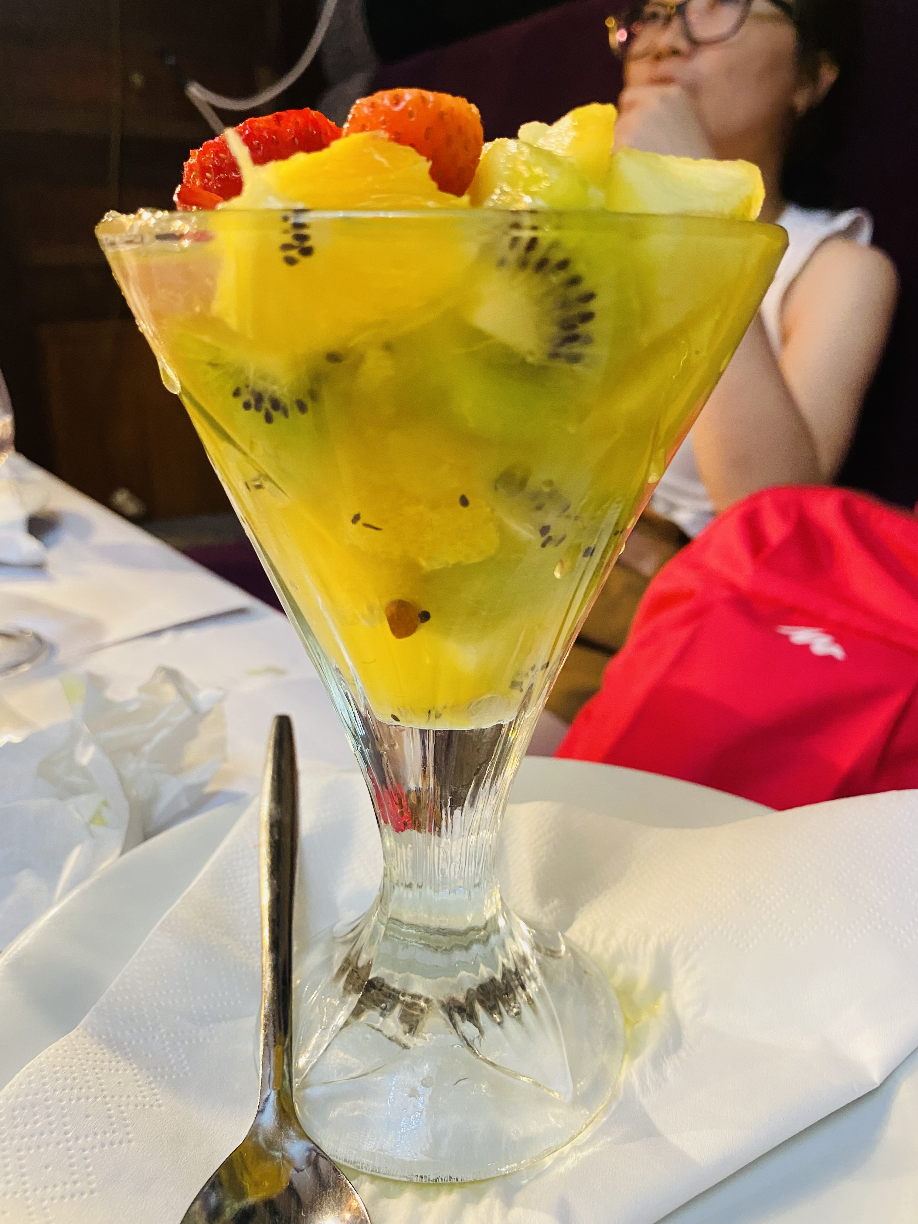 Sauce a salade coupé à l’eau, vin ouvert immonde à la limite du vinaigre, on a pris une bourguignonne il y avait pas assez d’huile dans le caclon immonde pour cuire les morceaux de viande et les touristes qui se sont fait berner comme nous n’avaient pas l’air content non plus 👎👎 note positive les serveurs sont super gentils et compatissants.