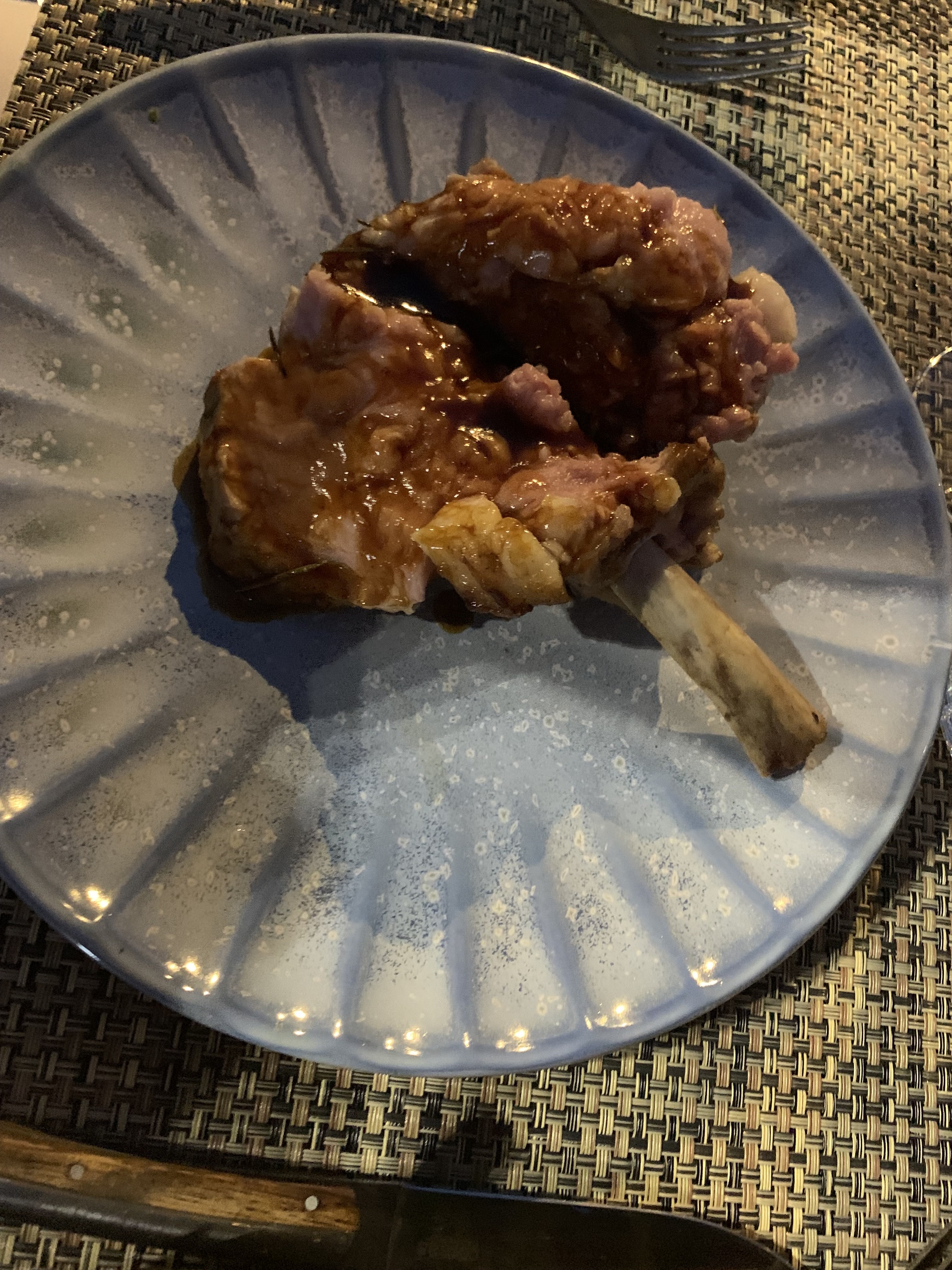 Sûrement une fin de saison, peut-être font ils mieux en juin ou juillet.....mais là, je ne suis pas sorti emballé. Le morceau de cochon en 3 cuissons....je pense que la dernière cuisson est à froid, beaucoup de patates tièdes pour très peu de viande. Bon,,,,,la vue depuis la terrasse est belle.