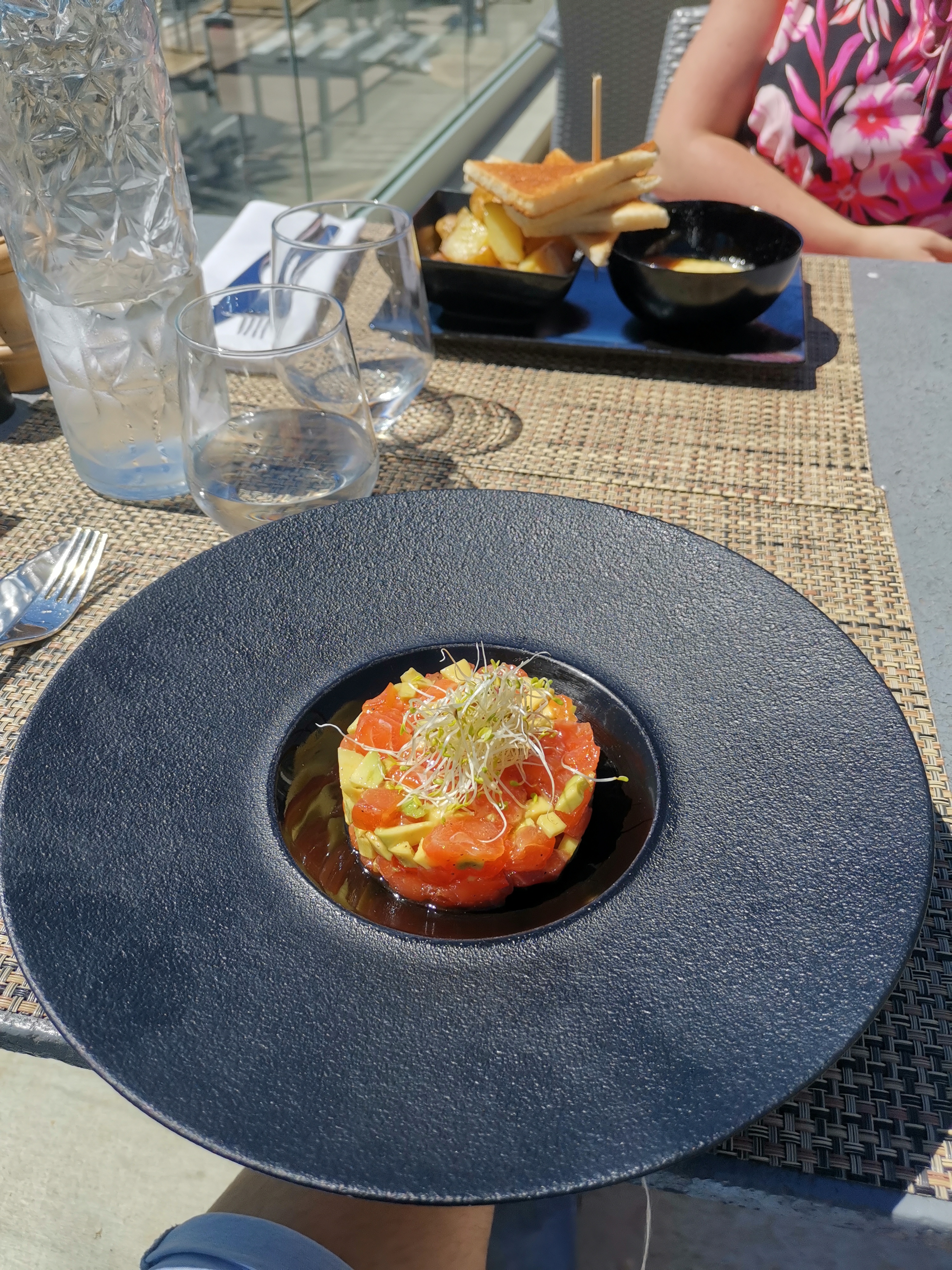 Belle terrasse, et personnel sympathique. Concernant les plats ils sont bons mais pas non plus excellent.. Les rigatonis au saumon.. quelques morceaux de saumon.. même pas un pavé.. Le fondant au chocolat qui ressemble plus à un moelleux.. Dommage !