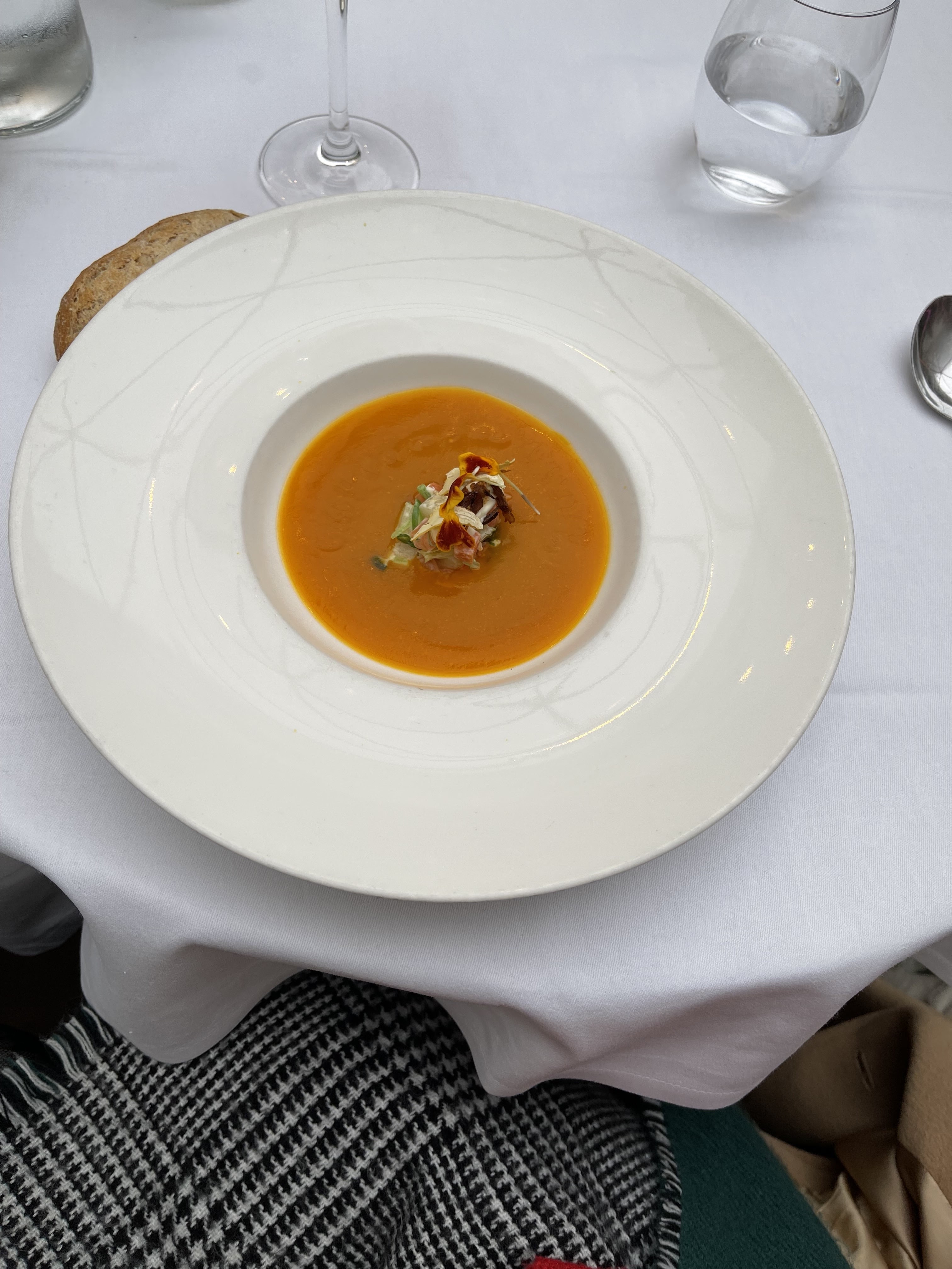 Déjeuner au frais au restaurant, d'une cuisine créative mais respectueuse des produits qu'elle met très bien en valeur. Des plats en apparence classiques, mais abordés et créés d'une manière moderne, élégante. On se régale! Accueil absolument charmant, attentif, souriant, et un chef adorable qui vient saluer ses convives, tout pour faire une experience inoubliable. Merci pour ce merveilleux déjeuner prolongé.