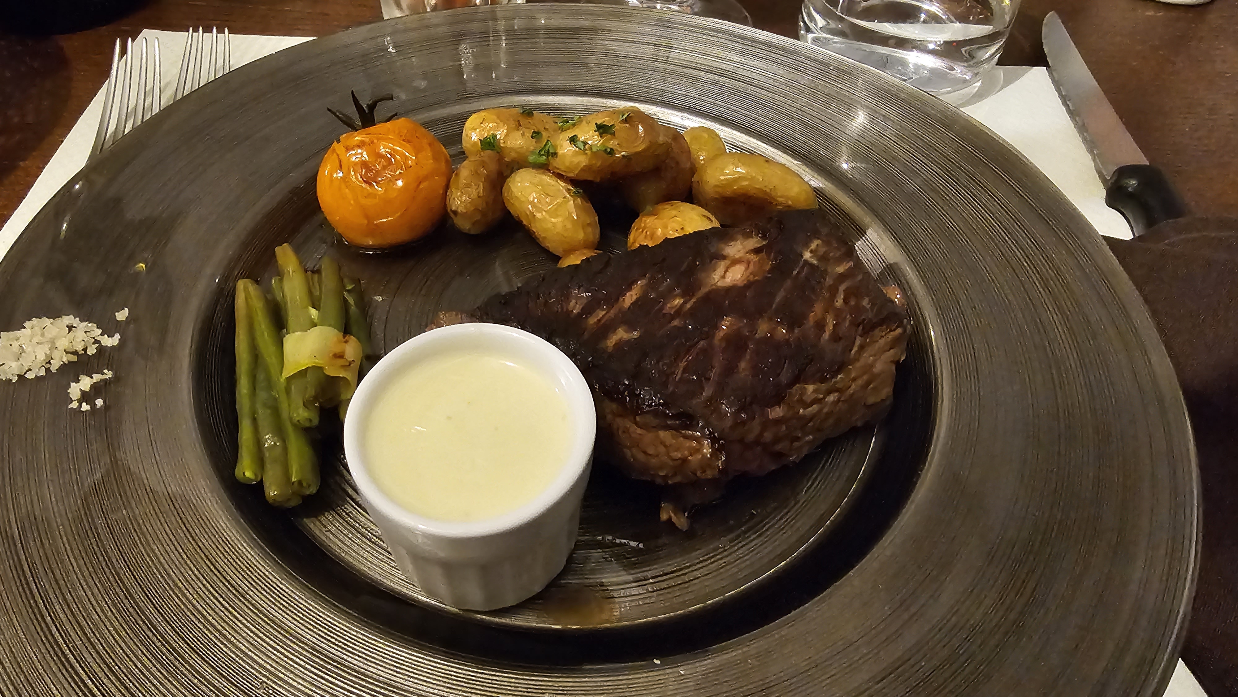 Très bien accueilli. Prix correct. Tres Bonne viande ( pièce de bœuf) . Disgestif offer Merci