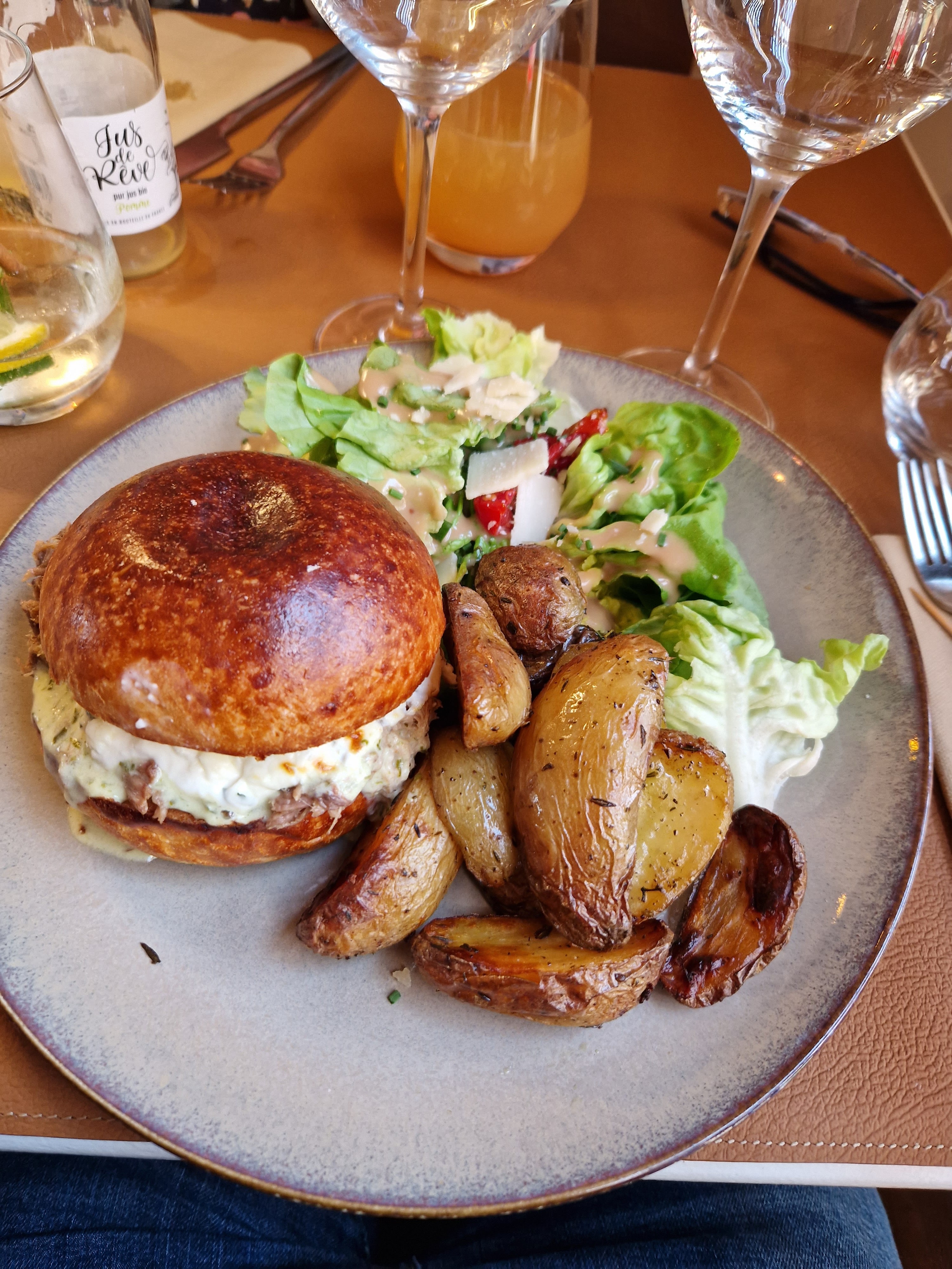 Un bon moment, le service est impeccable et l'ambiance sympa. Nous avons beaucoup aimé l'entrée et le dessert. Le burger du jardin et son accompagnement nous a moins convaincu au niveau de la puissance des saveurs.