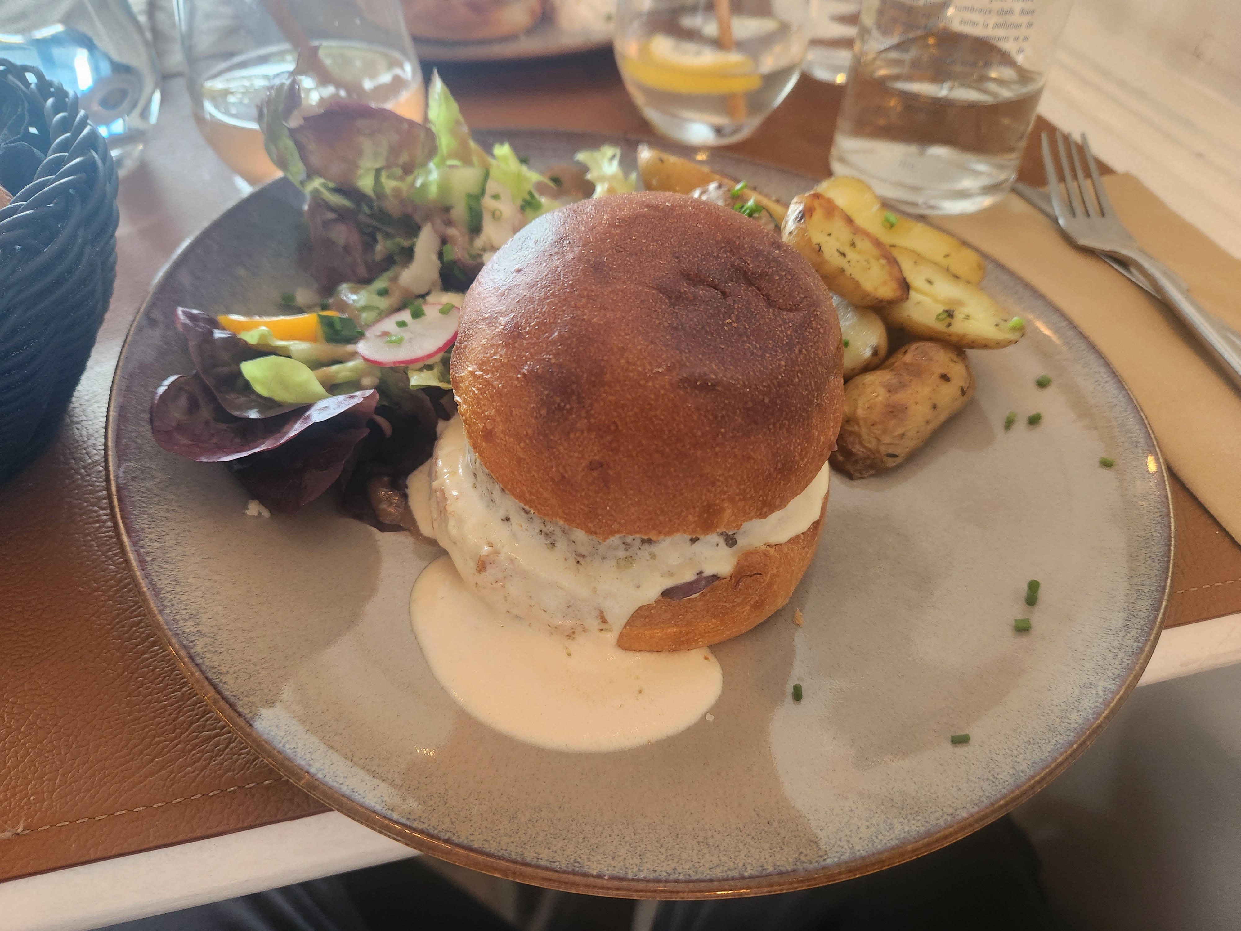 Repas mercredi 15/02 midi avec réservation pour 2. 1ère expérience pour nous. Restaurant choisi après avoir regardé l'ensemble des (très bons) avis Google, pour clôturer notre séjour en Baie de Somme. Accueil très correct par l'équipe de serveuses. Carte peu remplie, preuve de qualité. Nous avons pris 2 entrées de saumon, très frais avec la mascarpone un délice. 1 burger vegetarien et 1 filet de bœuf d'excellente qualité. Cuisson respectée, la viande fondait dans la bouche. Très bonne carte de vins. Produits de qualité, tout juste ce qu'il faut dans l'assiette niveau quantité. Nous avons passés un excellent moment. Nous recommandons fortement cette adresse, et la gardons pour notre prochaine venue. Merci à toute l'équipe.