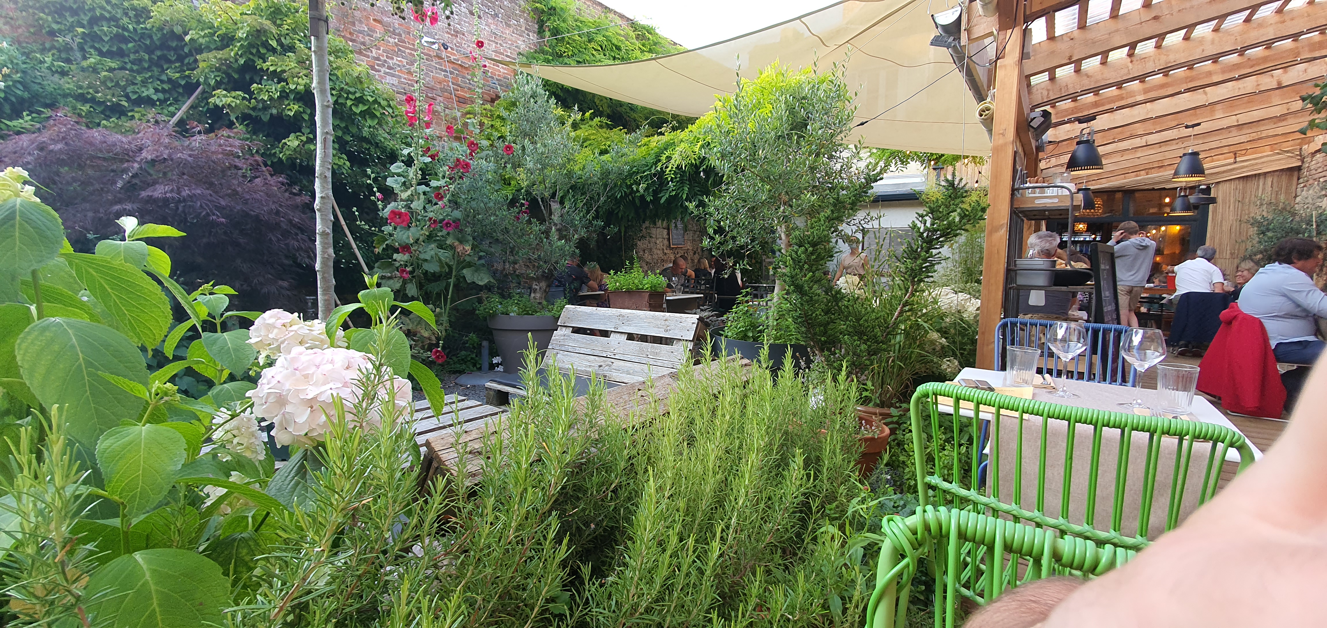 Un jardin canon en pleine ville et insoupçonné lorsqu'on regarde la façade. Dans l'assiette c'est très bon et le service est très efficace. Un lieu vraiment sympa