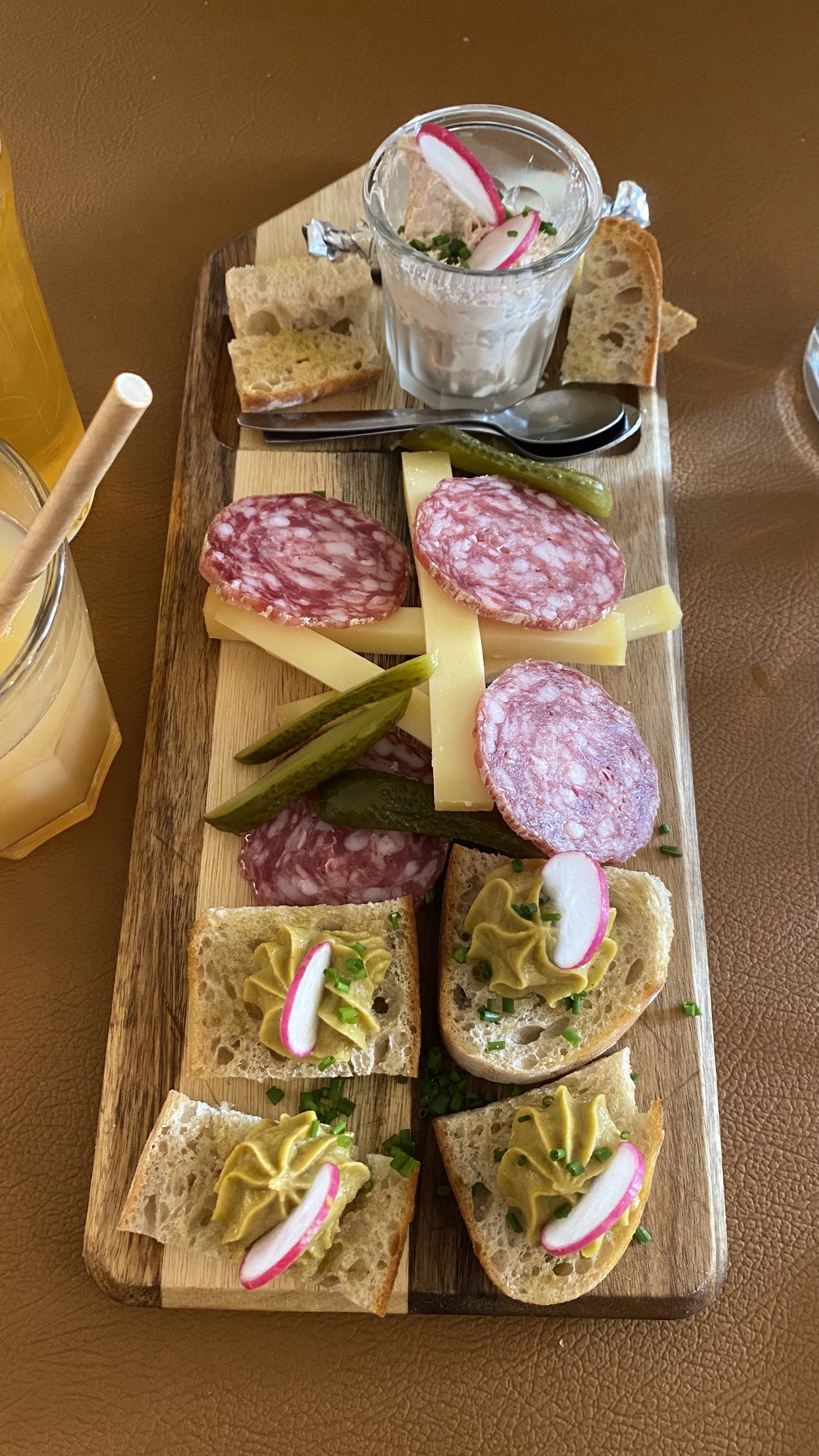 J’ai réservé ce restaurant pour un dimanche vers 13h. Nous sommes arrivés, l’on nous a installés et puis plus rien. Après 10 minutes on nous donne enfin la carte des boissons et des plats. Nous avons pris 2 boissons plus une carafe d’eau et une assiette apéritive. L’assiette est arrivé 15 minutes après les boissons.. Et une fois l’assiette fini, il a fallu attendre environ 40 minutes pour recevoir les plats.. Nous n’avons pas pris de desserts suite à ça. La cuisine est bonne mais sans plus, ne justifie pas le prix élevé et l’attente est trop longue. Se veut proche de la nature, leurs sodas est fait maison, du beurre AOP demi-sel, produits locaux.. mais utilise des serviettes jetables, des pics jetables, du saucissons avec boyaux plastiques, et le pain est simple.. points à améliorer. Merci tout de même pour le repas mais je peut avoir un meilleur service pour moins cher..