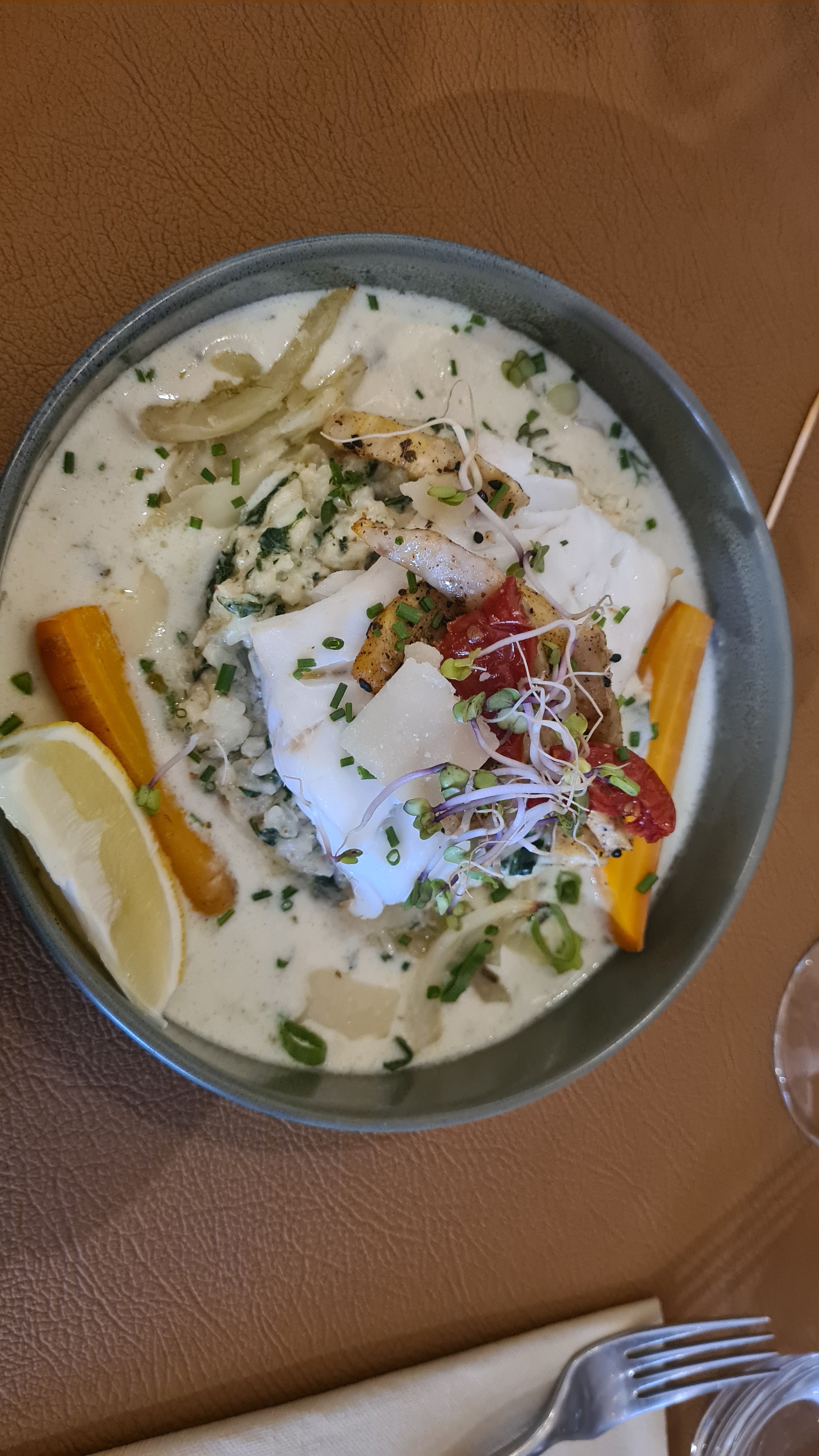 Super lieu avec des saveurs uniques, comme de l’aiglefin à l’ail des ours et purée de patates douces noix de coco…. Juste excellent 👌 La décoration est sympathique et le personnel aux petits soins