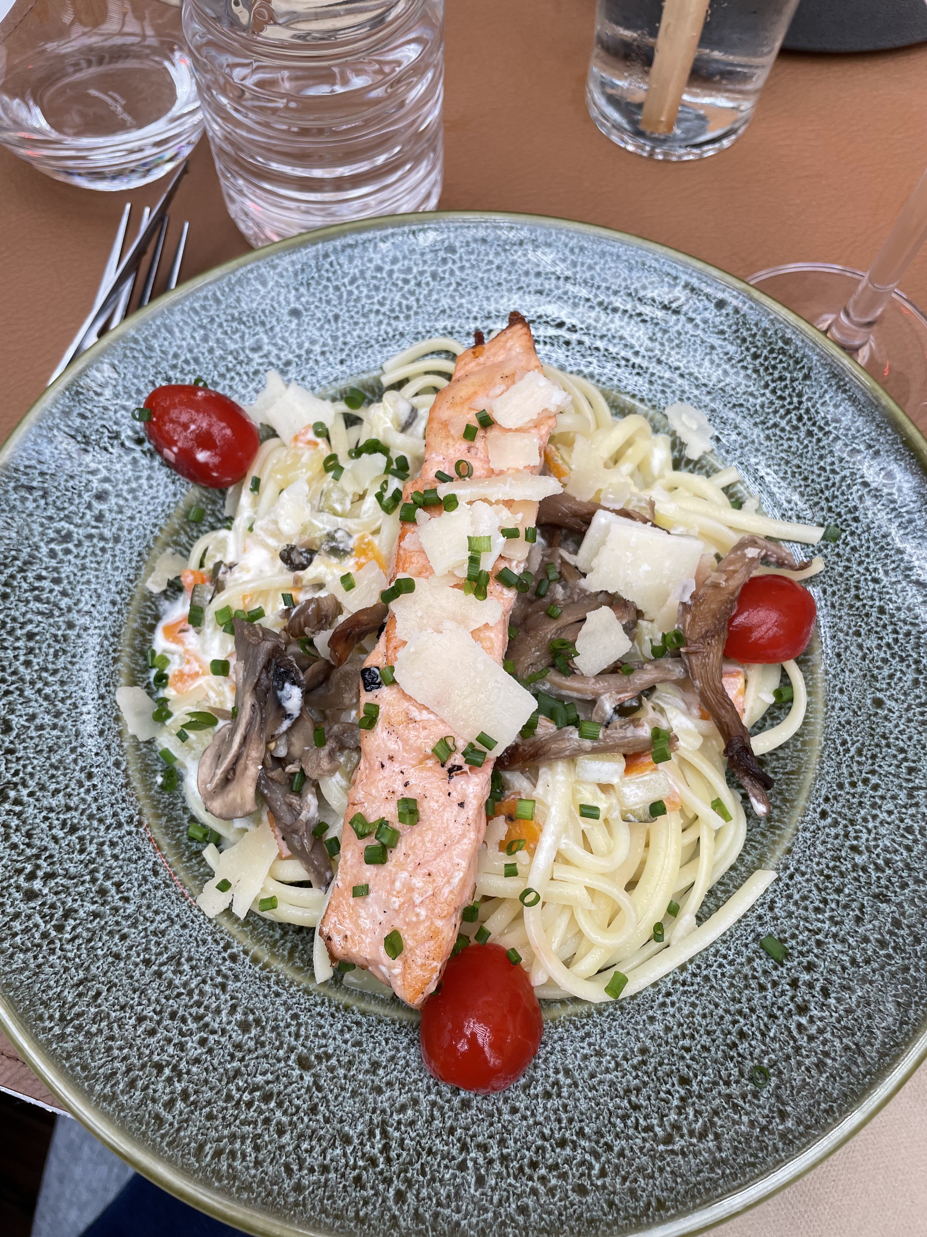 Cela faisait longtemps que je n’avais pas mangé un plat d’aussi bonne qualité! Saint Jacques à tomber et vins sublimes. Menu enfant qui mérite une étoile en plus, ils ont eux aussi des plats qui valent le détour! Risotto de coquillettes au jambon et parmesan, assortiment de petits desserts et jus de fruits. Et pour finir de nous séduire, une serveuse charmante et attentionnée. Nous ne sommes là que quelques jours sinon nous serions vite revenus!