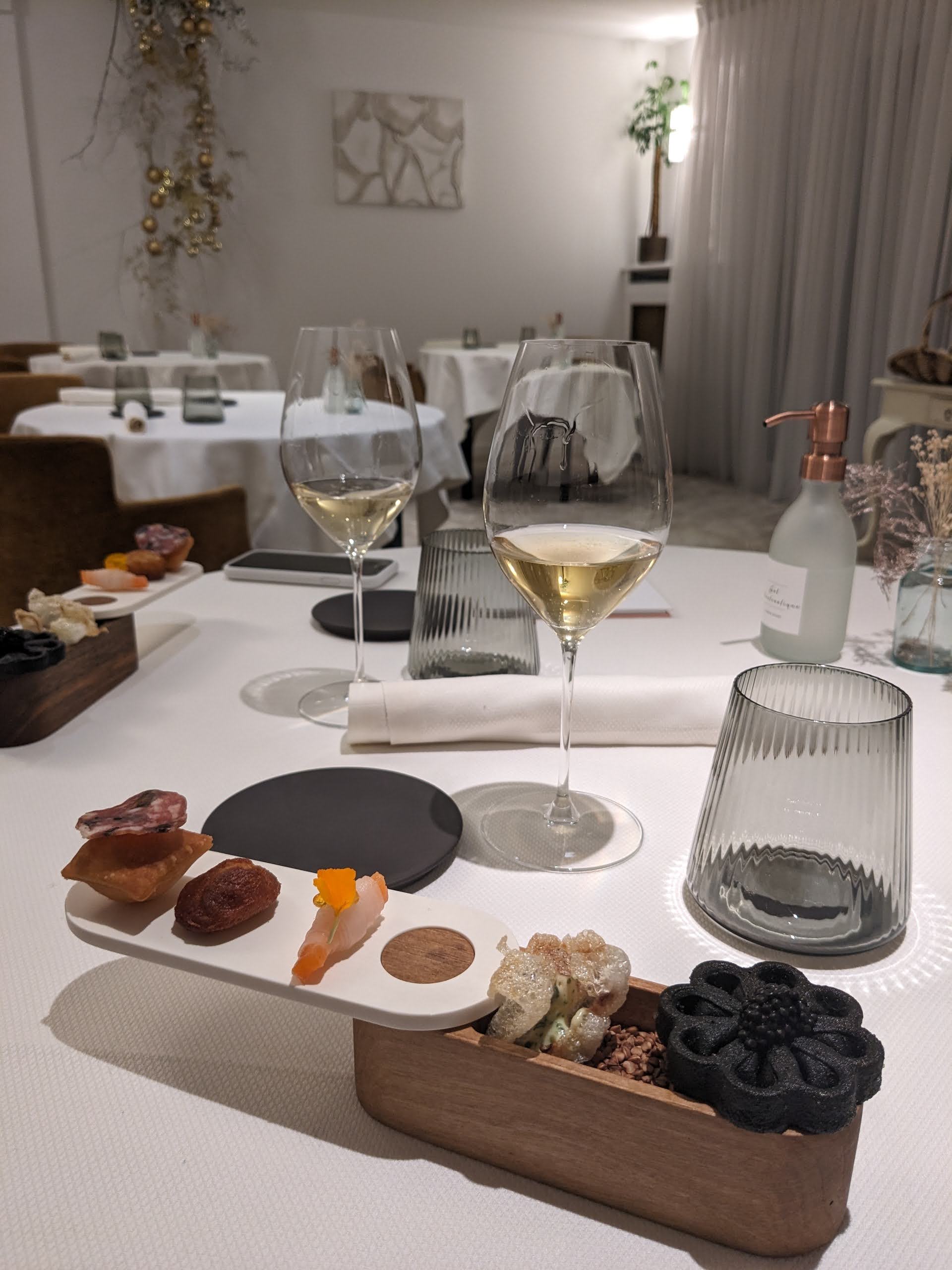 Arrivés à 19.15, sortis à 23.30 après avoir abrégé car trop long! Pas à la hauteur d'un étoilé. Une éternité entre chaque plat, qui nous a fait manger beaucoup de pain. Les vins étaient bien, découverte de petites maisons. Déçu de l'expérience qui se devait d'être exceptionnelle. La cuisine n' est pas à la hauteur. On attend vraiment plus d' un étoilé.