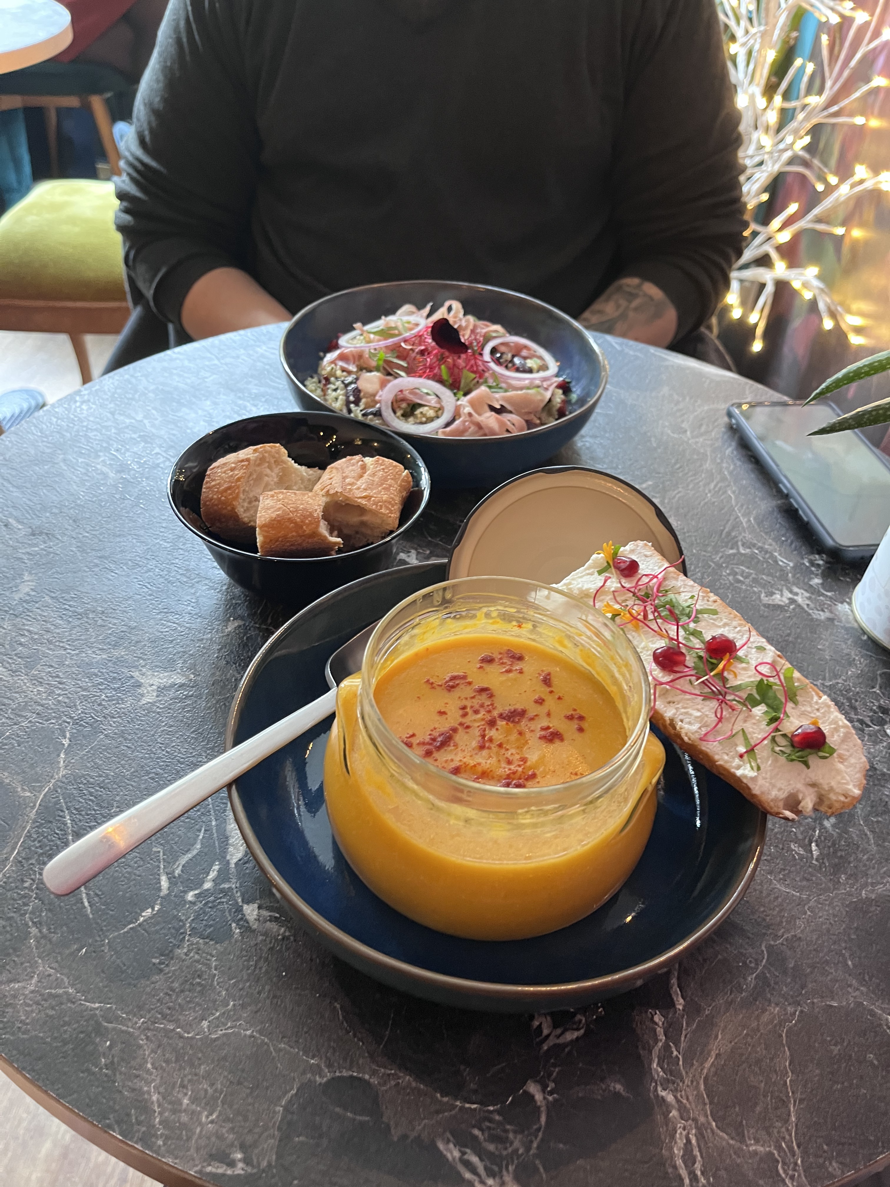 Super accueil, très chaleureux Déco pas du tout odieuse comme le dit un certain commentaire 🤨🤨 On a vraiment bien mangé ! Le carrot cake est excellent ! L'ambiance était géniale aussi, on a beaucoup ri Bref super endroit !