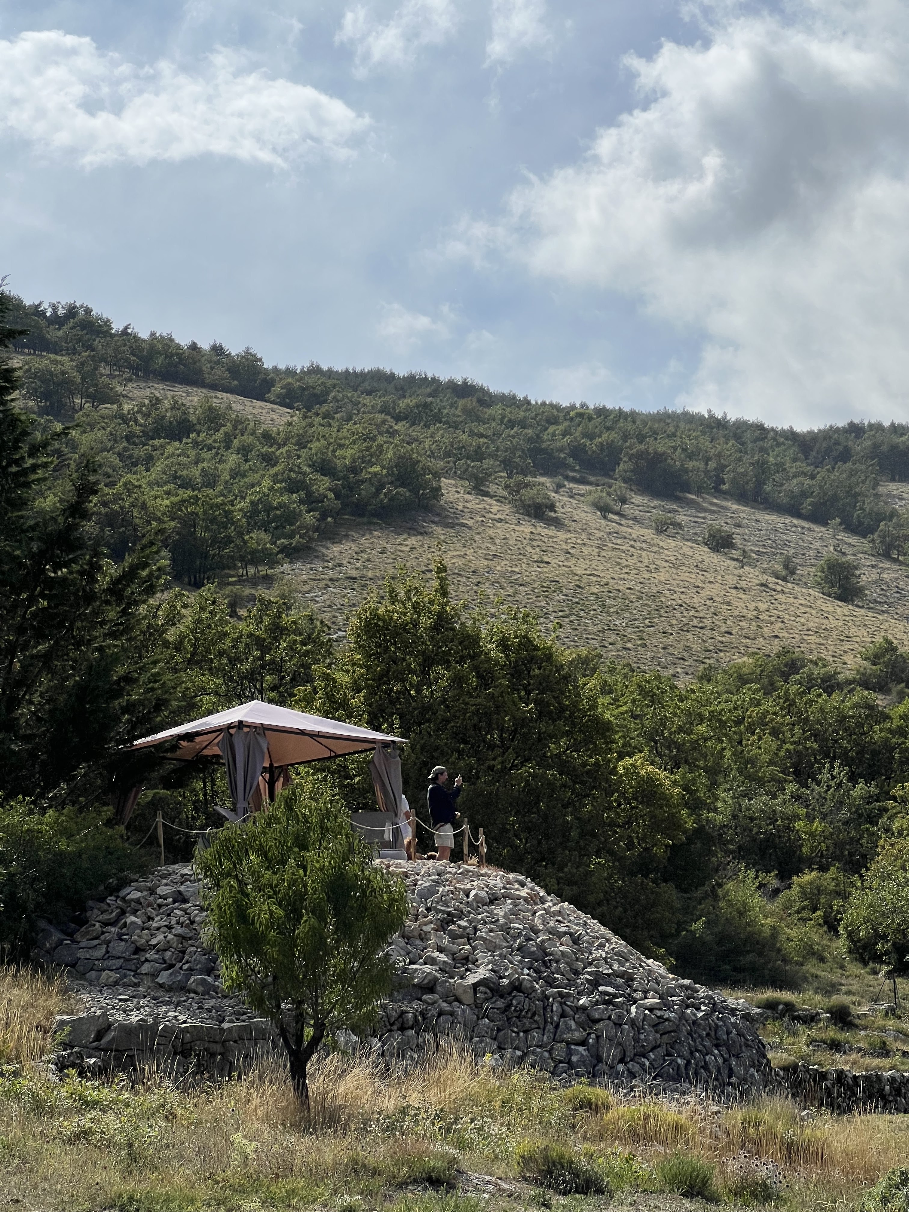 Après une bonne heure de marche en partant un peu au dessus de Gourdon par le GR 51 nous arrivons au jas des Rochers chez Emma et Claude. Quel dépaysement quel accueil quel endroit incroyable et surtout quel bon repas concocté par Emma sur place . Quelle belle leçon d’écologie explique par Claude. Je conseille vivement cet endroit. Dépêchez vous pour cette année sinon en 2023 . Moi j’ai déjà prévu de revenir.