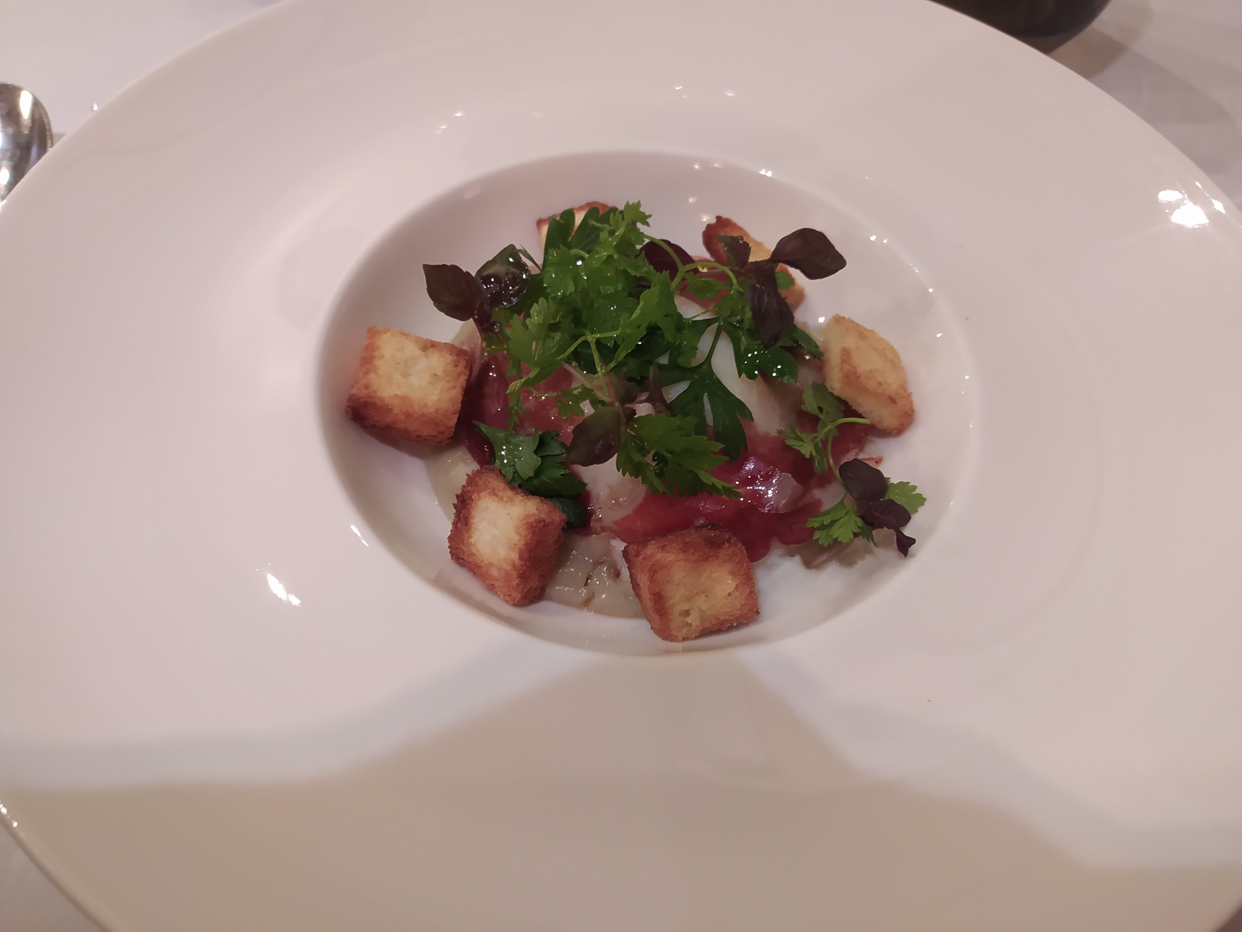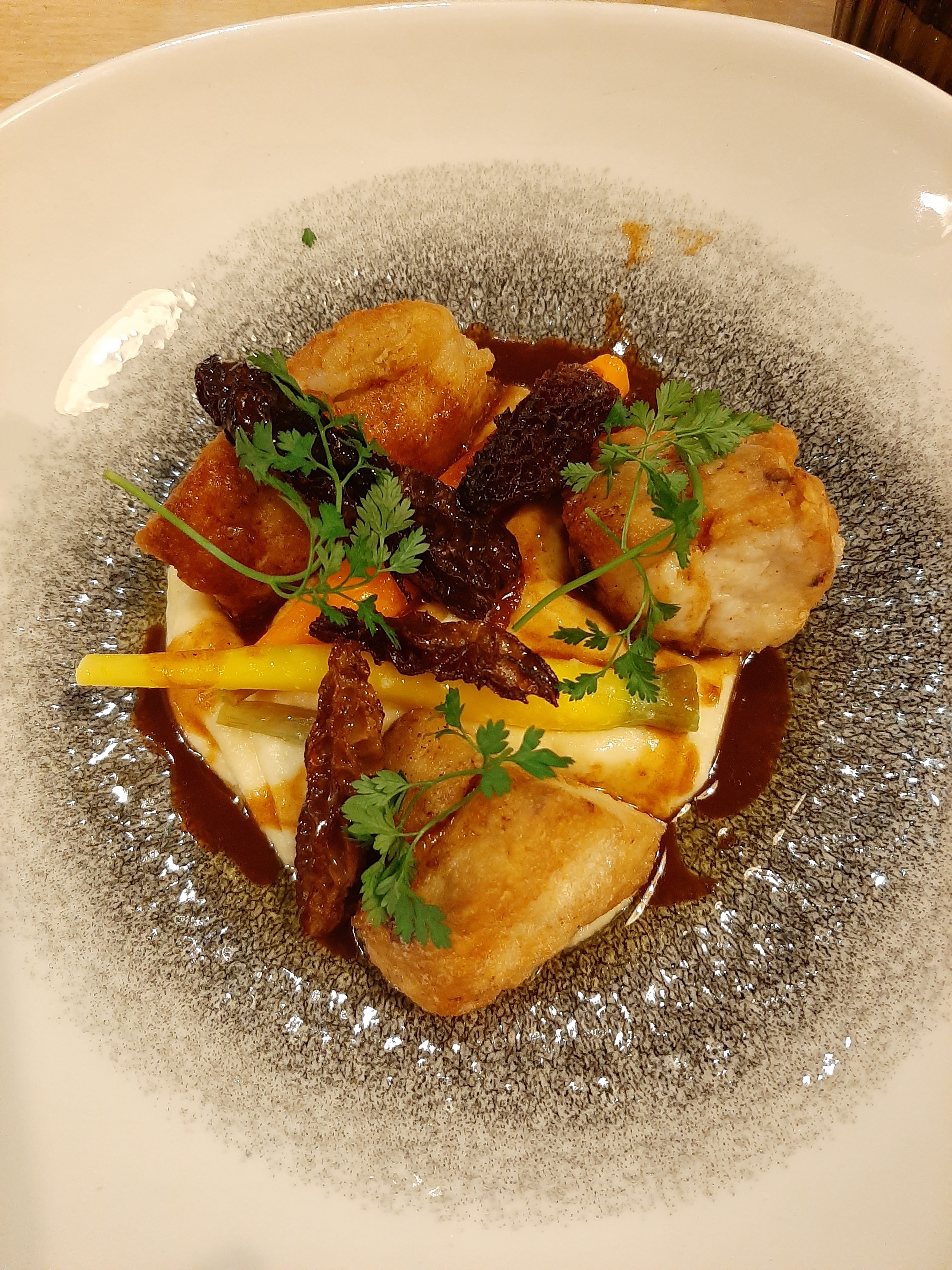 Très belle présentation, saveurs à la hauteur de la présentation. Salle décorée avec goût.