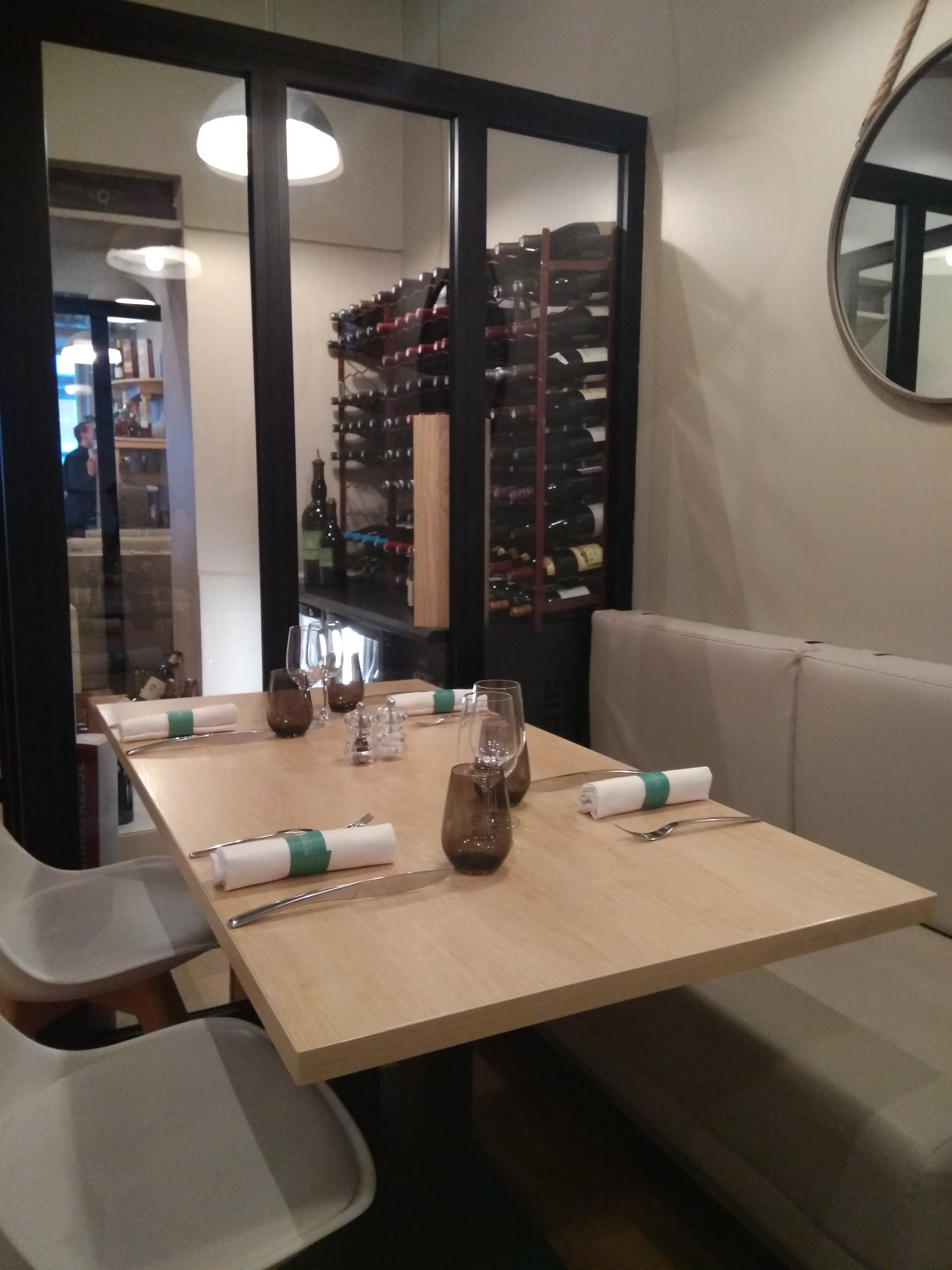 Très joli restaurant, quelques tables rondes, personnel très pro, bon conseil sur le vin et apéritif maison de qualité.