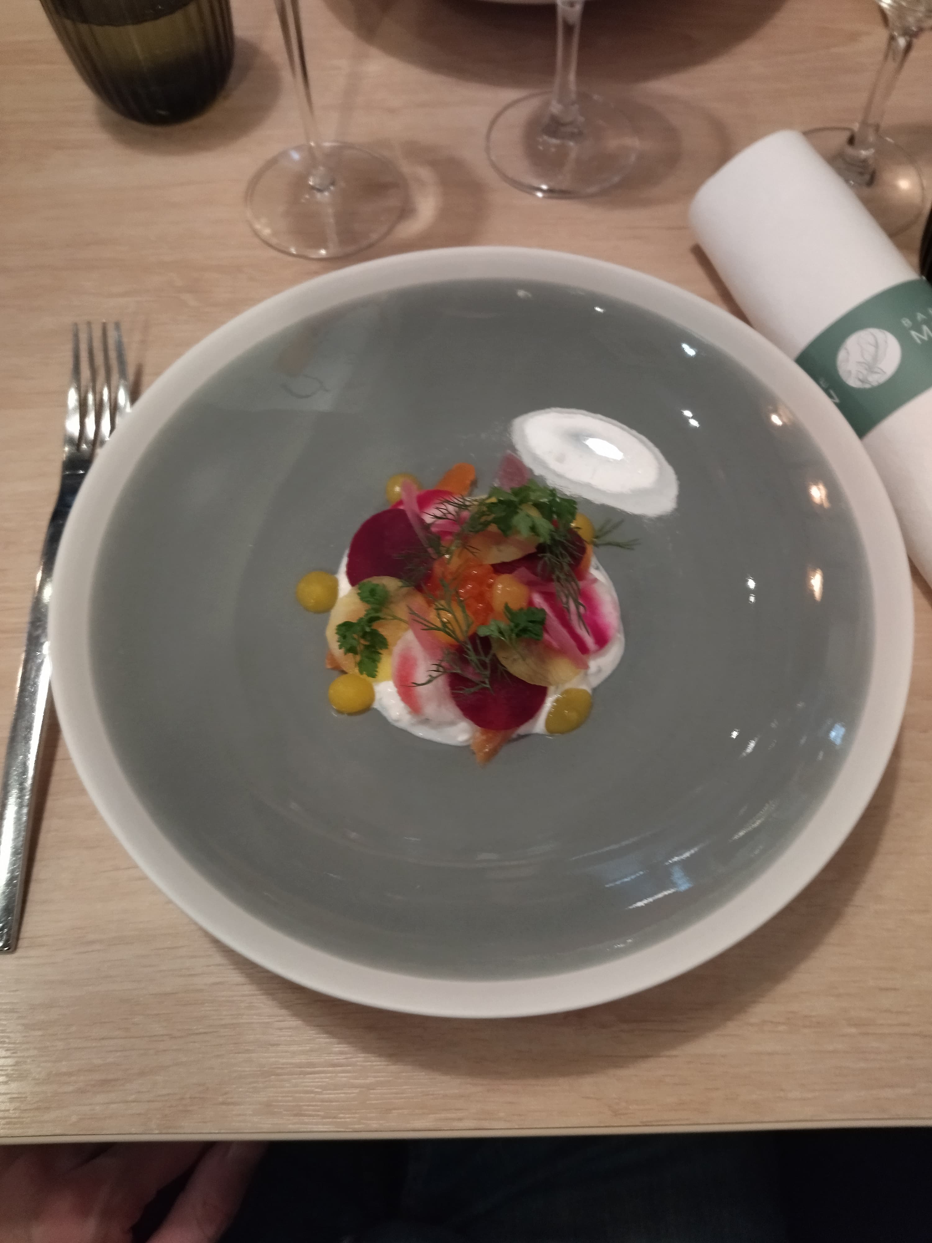 Dîner en couple, plats élaborés, quantité un petit juste, mais on vient surtout pour déguster et découvrir de nouvelles saveurs que vulgairement « manger ». Tout est frais et bon, je ne peux que recommander pour la partie assiette, notamment le dessert sucré-salé qui est très équilibré et délicieux. Le service pêche un peu, on sent une certaine crispation (palpable en cuisine en fin de service) mais cela ne gâche pas non plus le moment.