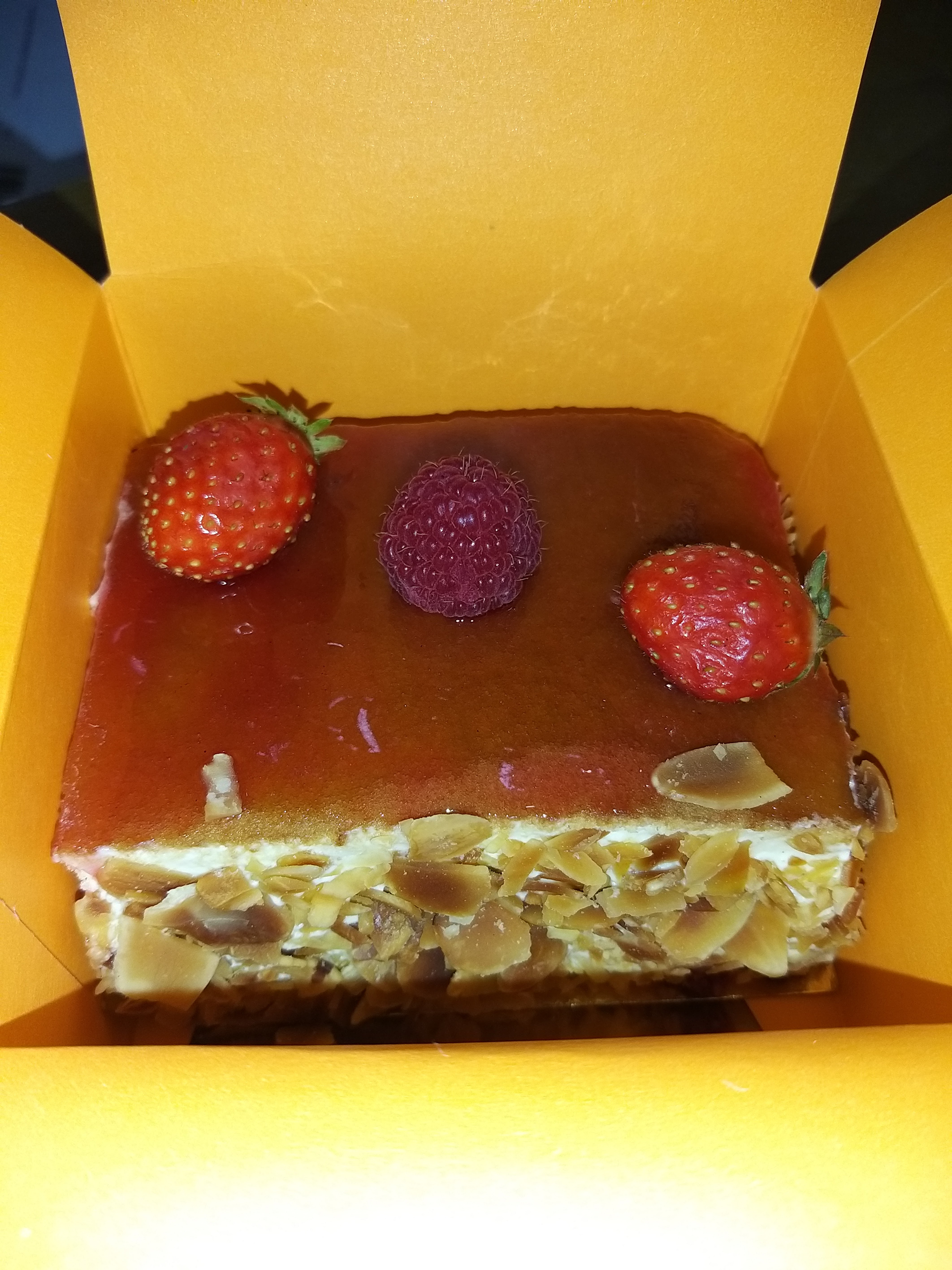 Nous sommes allés prendre le thé un jour de semaine. La gérante forçait vraiment les ventes. Les gâteaux étaient moyens ; le millefeuille était un flanc habillé en millefeuille. Je comprends la nécessité de vendre - mais je ne tolère pas la tricherie sur les produits