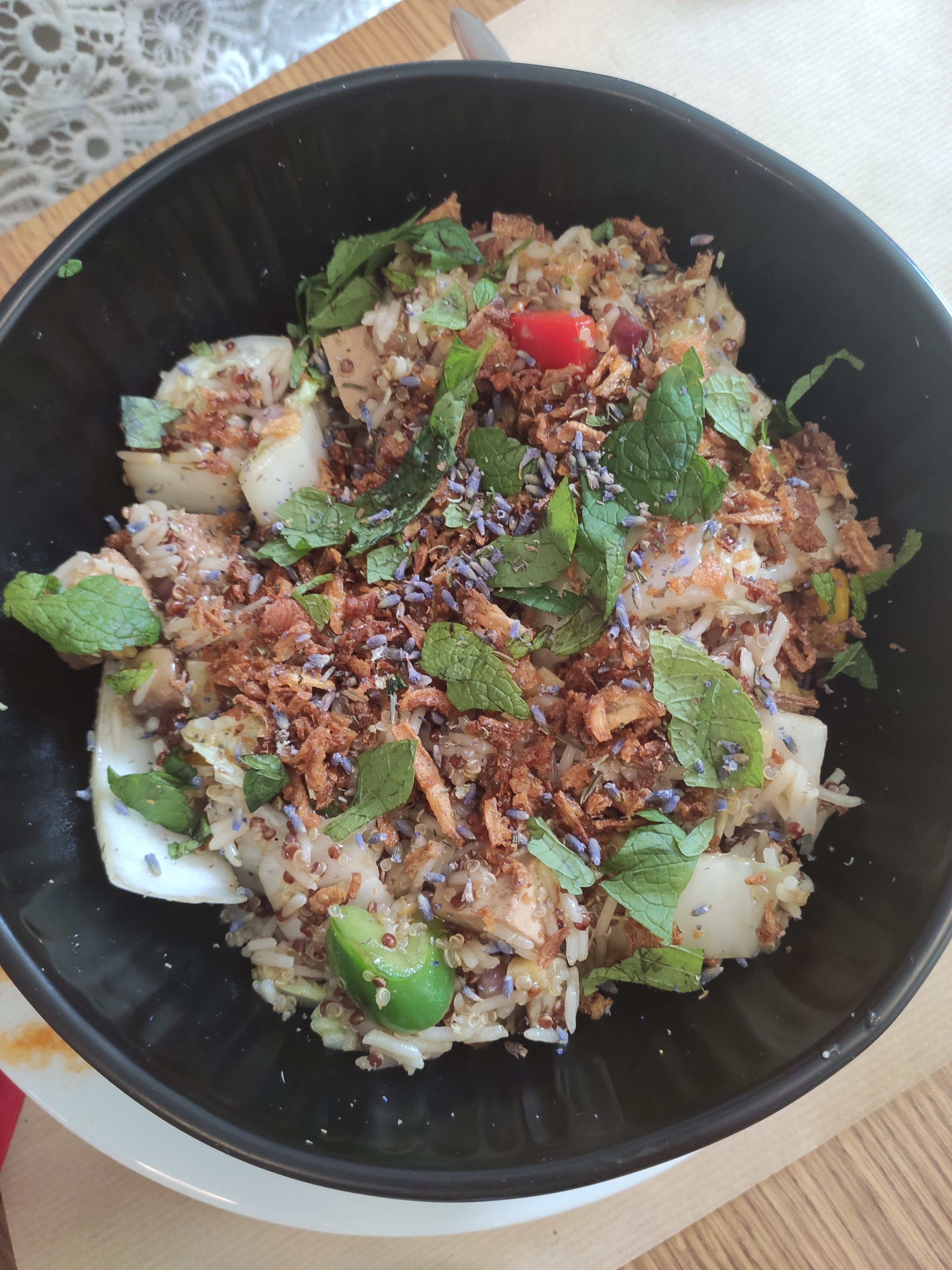 Contents d'avoir trouvé un restaurant qui propose du vegetarien et vegetalien. Le bouddha bowl est un vrai repas complet. Légumes, féculent, légumineuses, le gras de l'avocat et des noix de cajou 😀 Reste à décliner l'offre aux desserts 😅