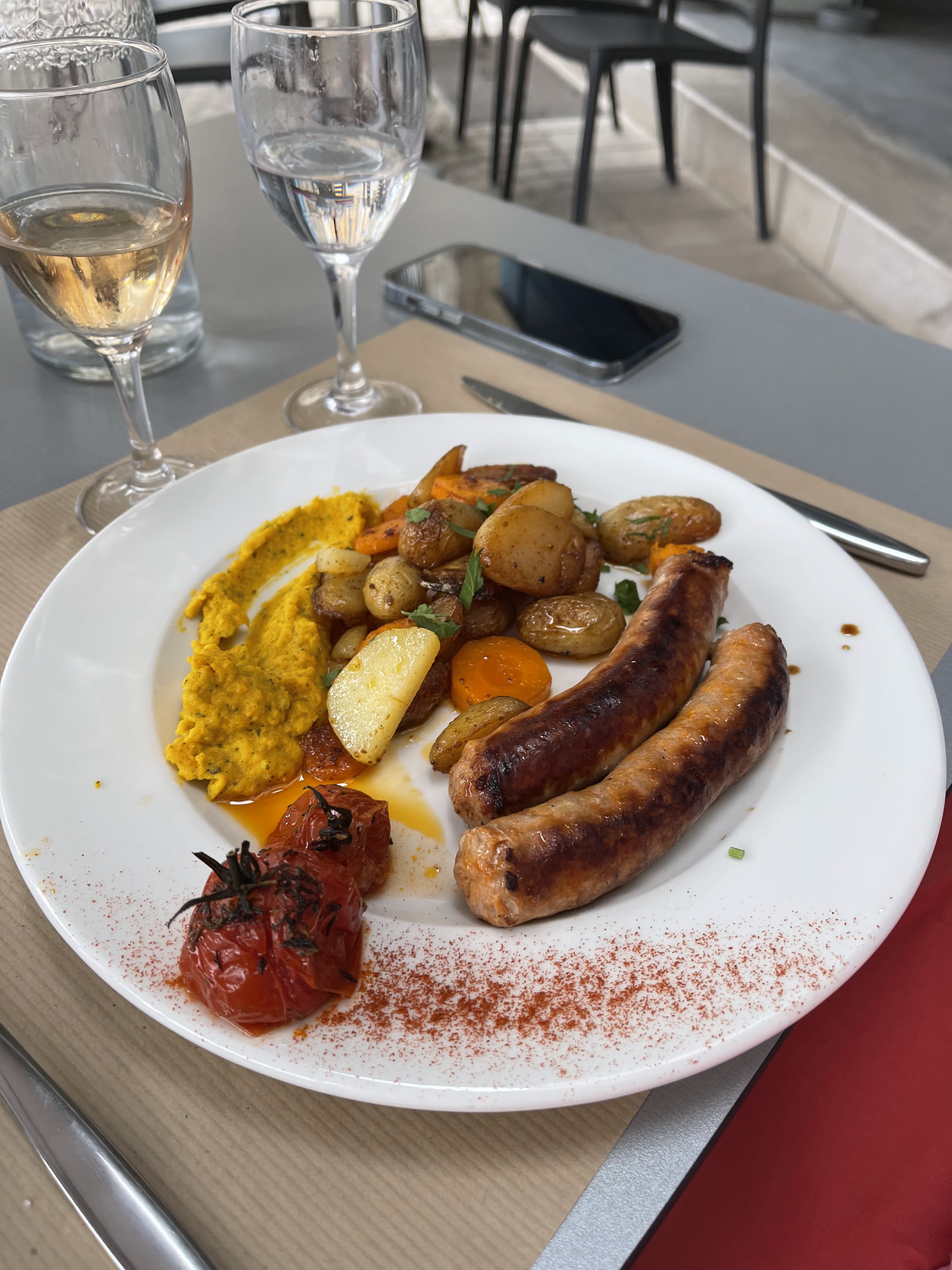 Très bien situé juste à côté des Halls, ce restaurant propose une formule intéressante en ce qui concerne le rapport qualité / prix. En plat nous avons pris les saussices au piment d'Espelette accompagnées d'un gratin dauphinois cuisiné façon mille- feuilles. Le plat avait bien le goût de la noix de muscade, nous on a bien aimé. Une très bonne adresse.