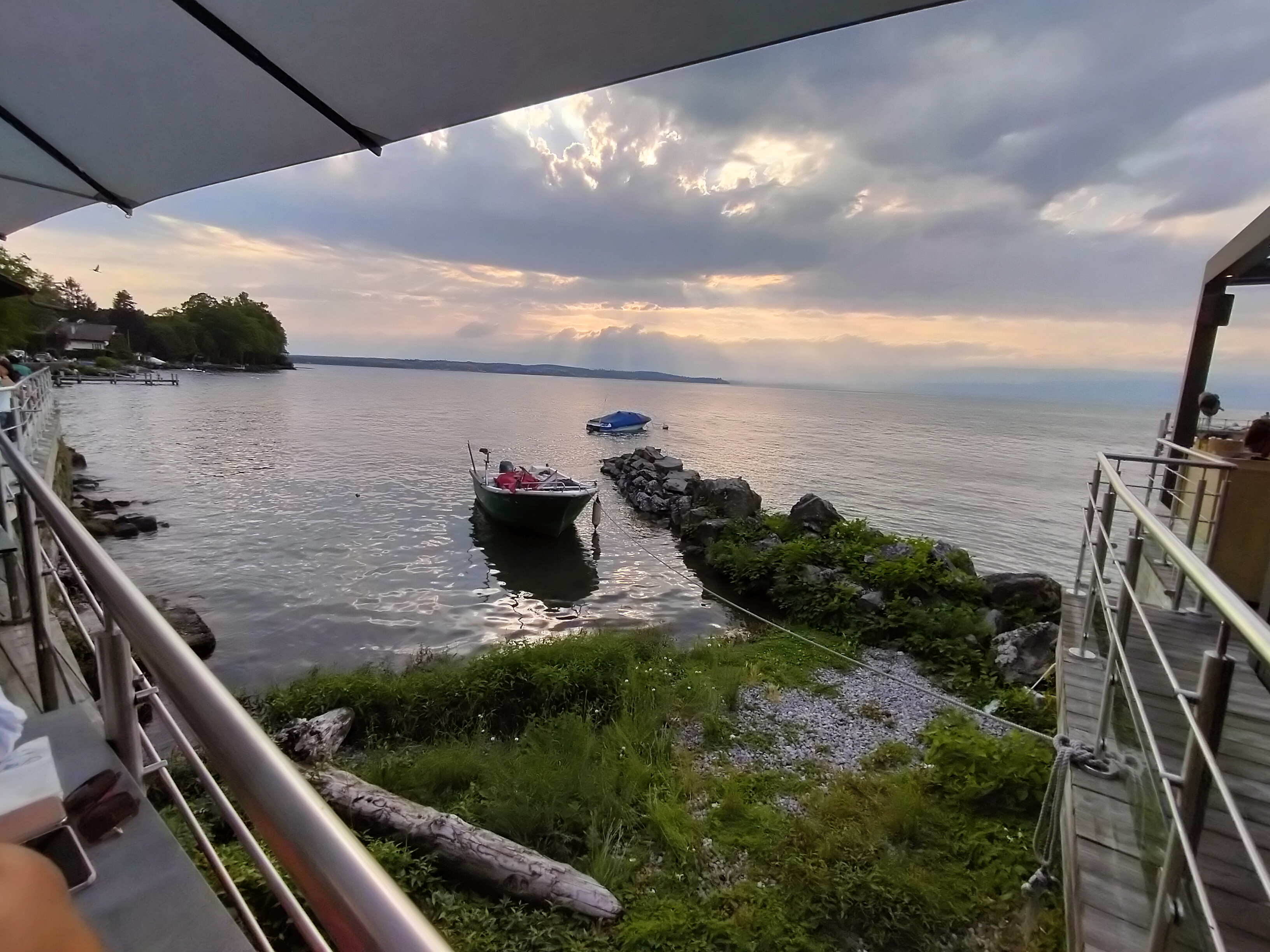 Très belle vue sur le lac. Côté assiette, pas mal mais un peu cher pour des filets vraisemblablement décongelés qui manquent de craquant. Vins très chers. Personnel sympathique malgré l'affluence. Obligé de faire repartir des verres avec marques de rouge à lèvre.