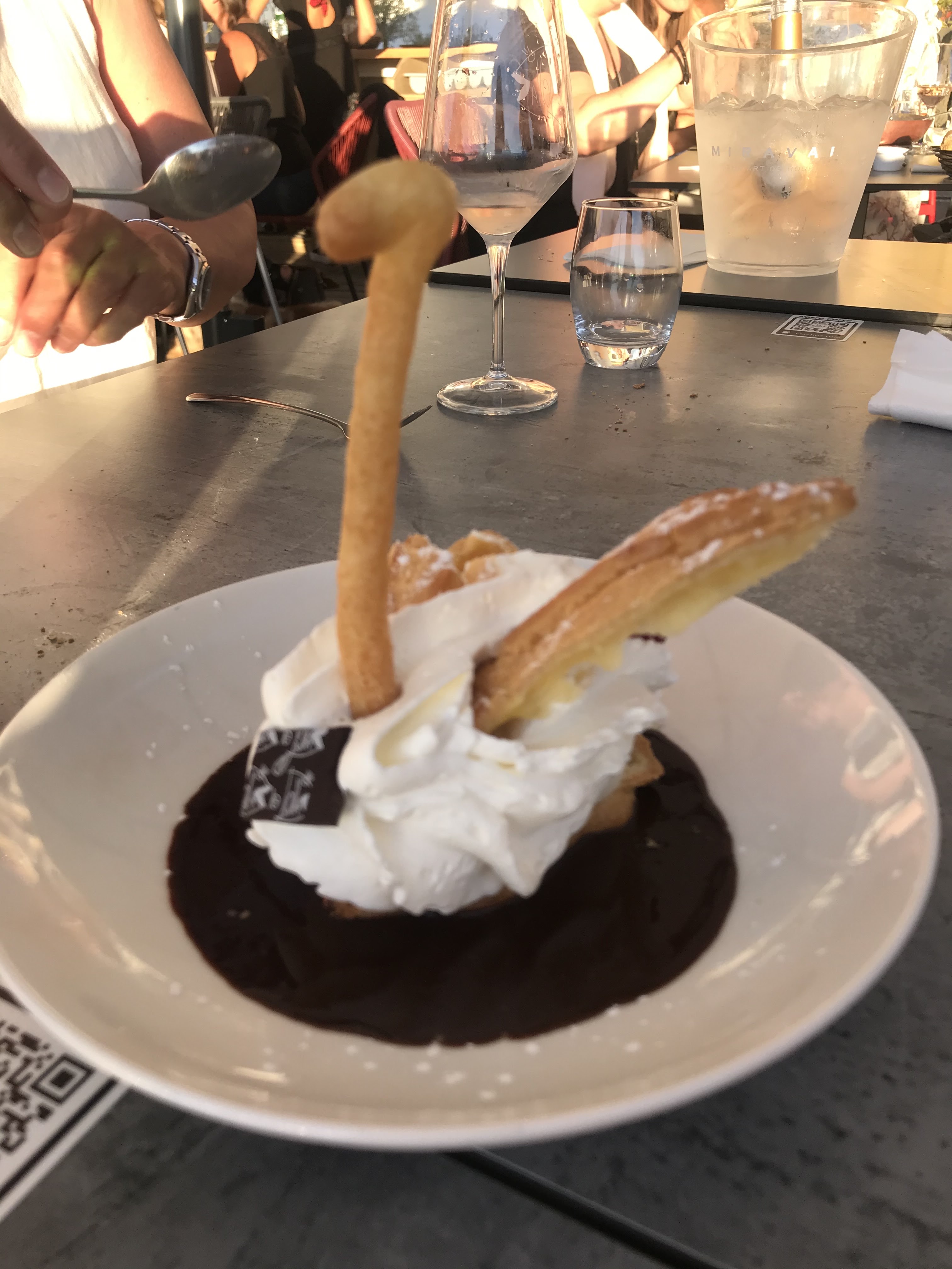 Le cadre est magnifique expliquant la note mais la nourriture pour le prix est moyenne. De plus, lorsqu’on commande 2 verres de vin et qu’un apéritif est en cours on comprend que ces derniers accompagnent les plats ! Les ramener de suite vont uniquement les réchauffer ou inciter la consommation ?!