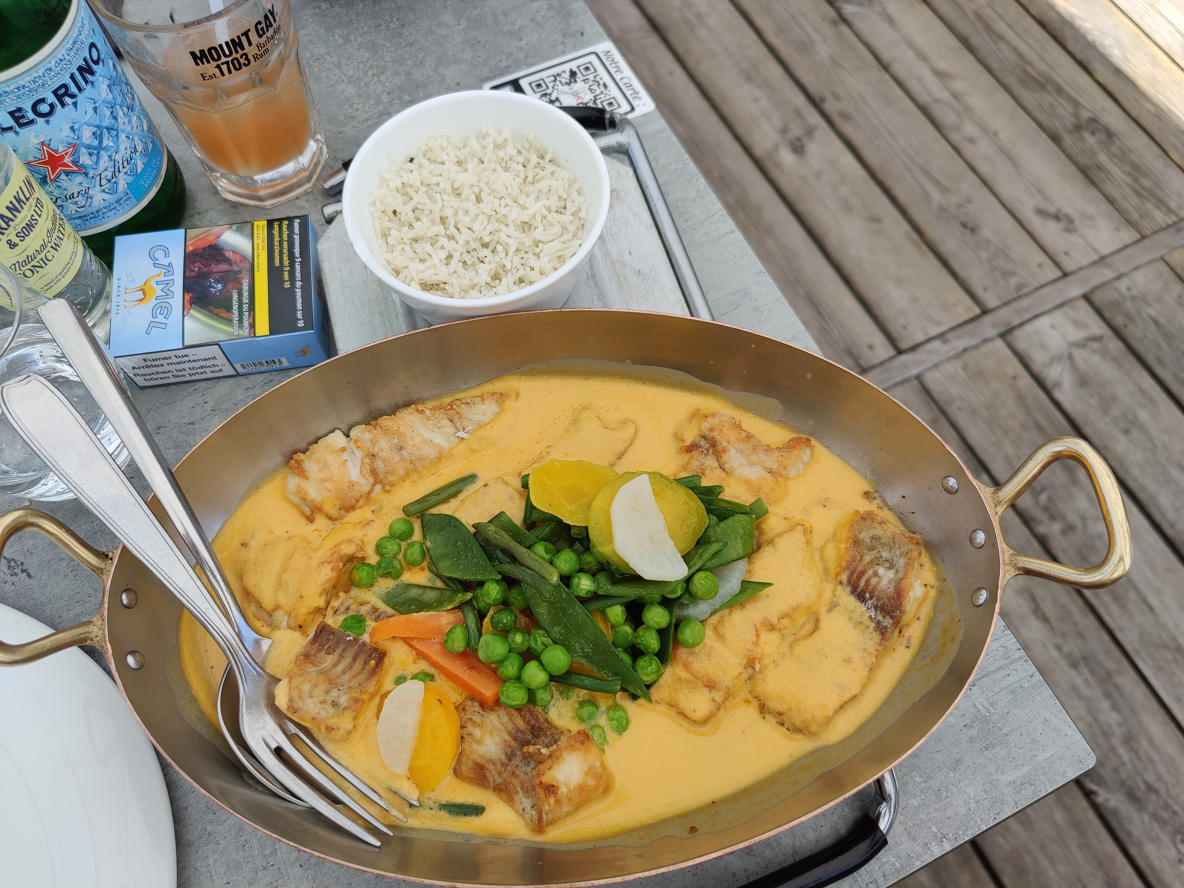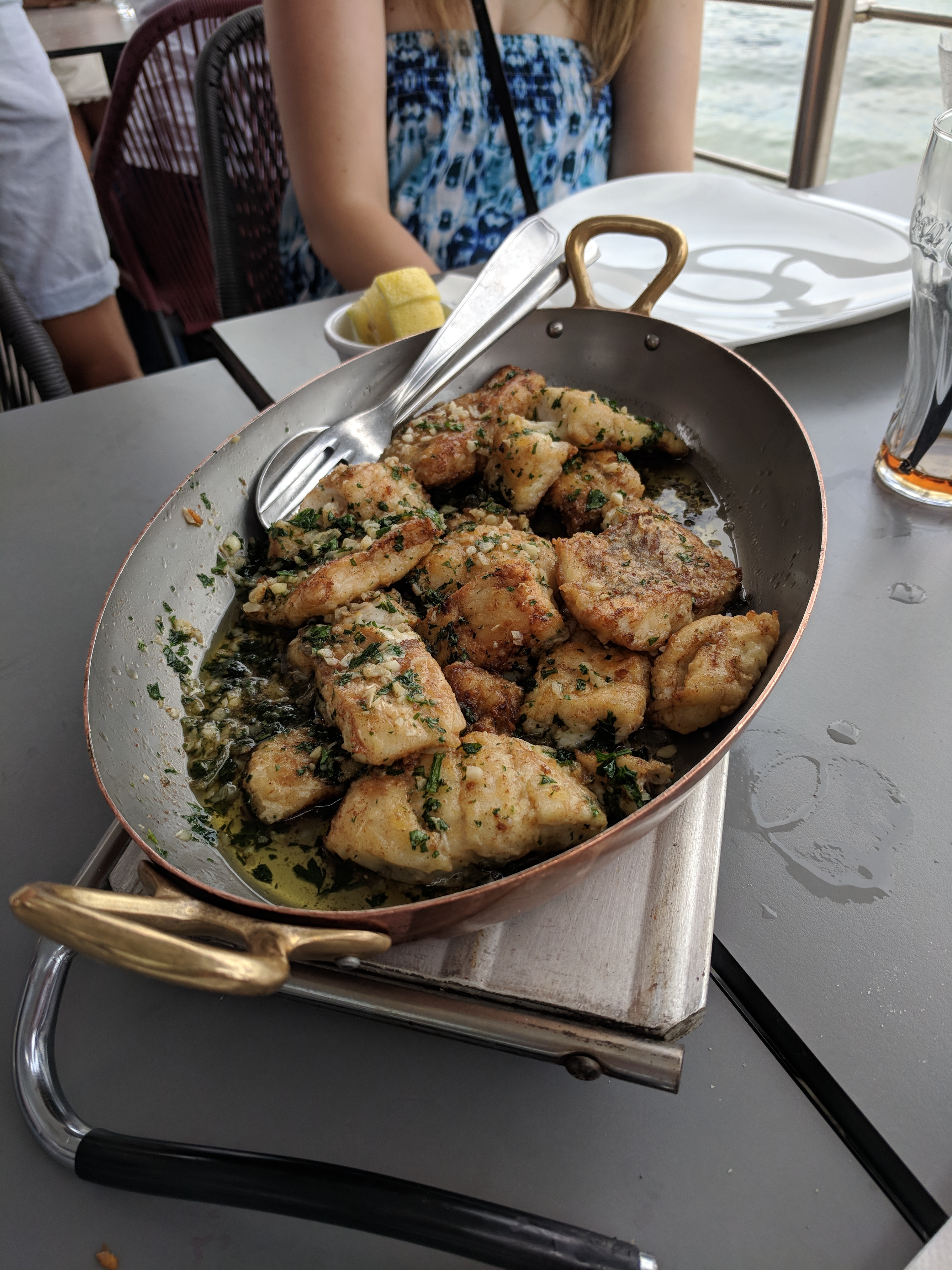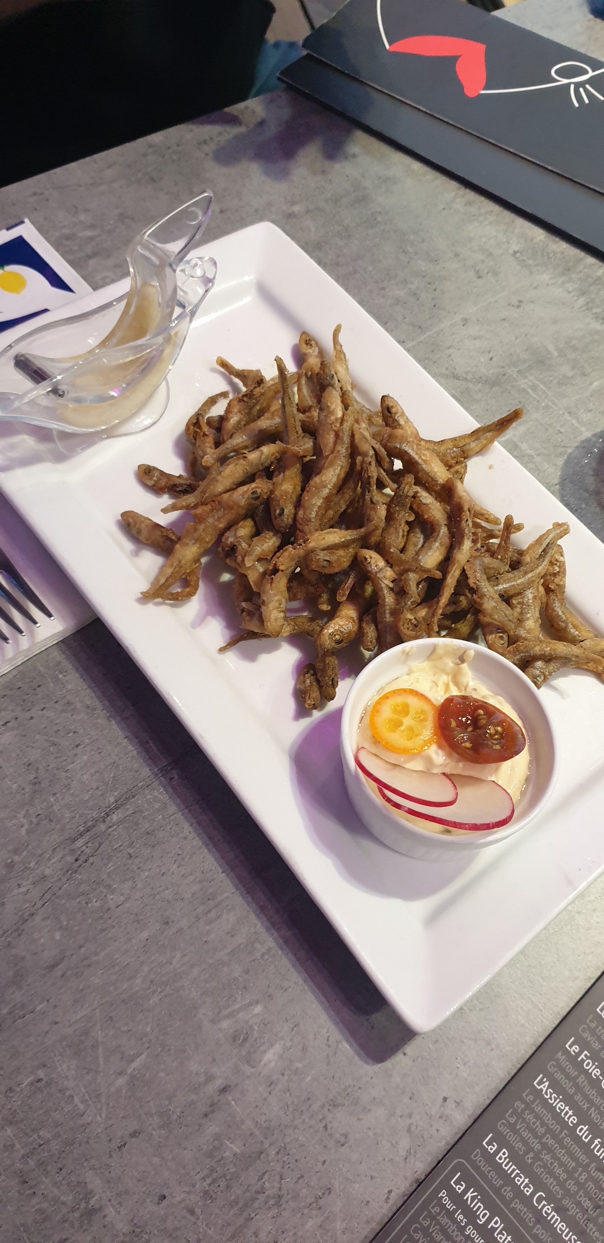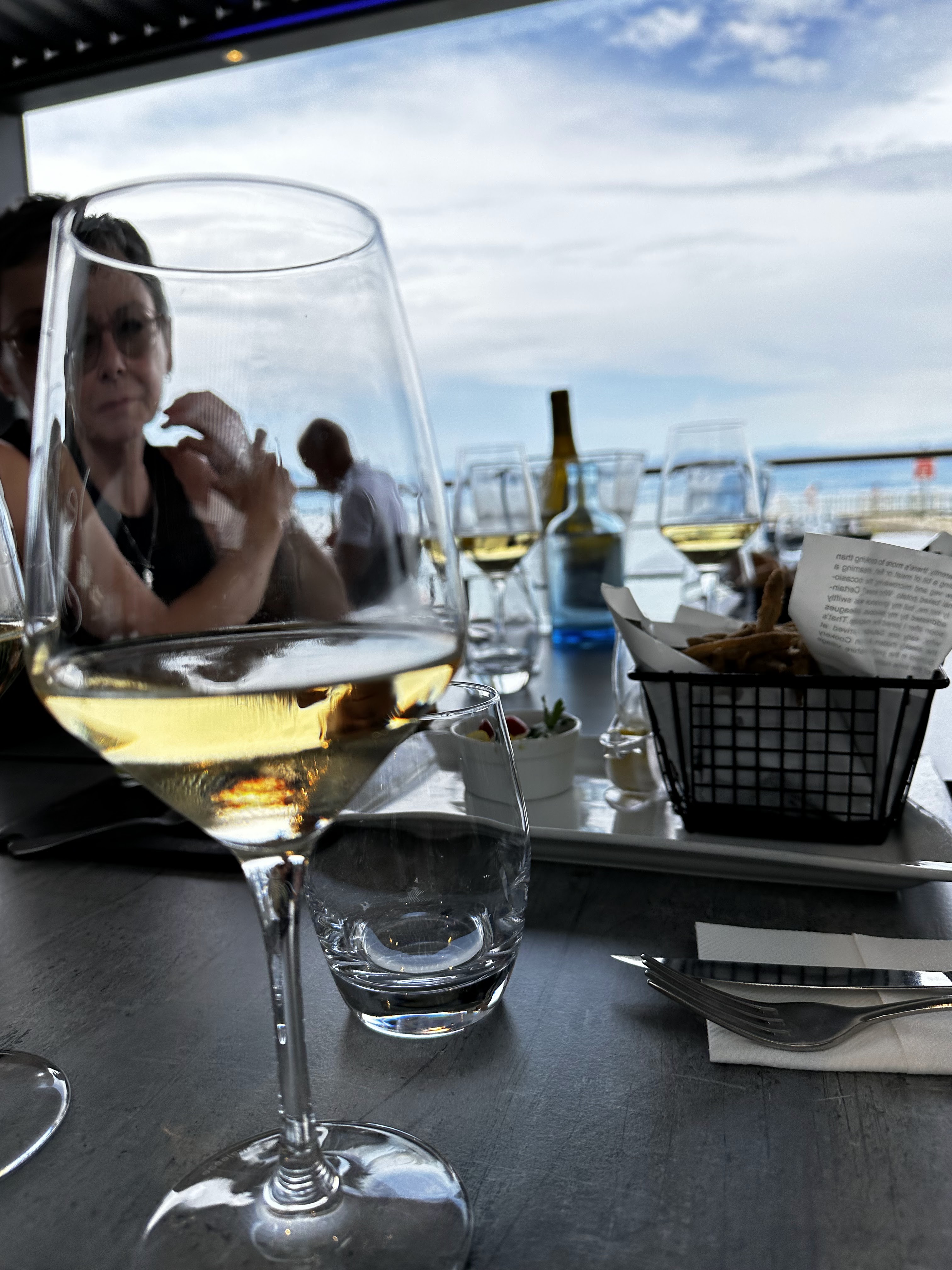 Sandrine nous accueille avec le sourire (sous le masque) la vue est superbe, le choix fut difficile car il y en a pour tous les goûts. La petite friture pour accompagner notre apéritif puis un délicieux poisson. Je recommande