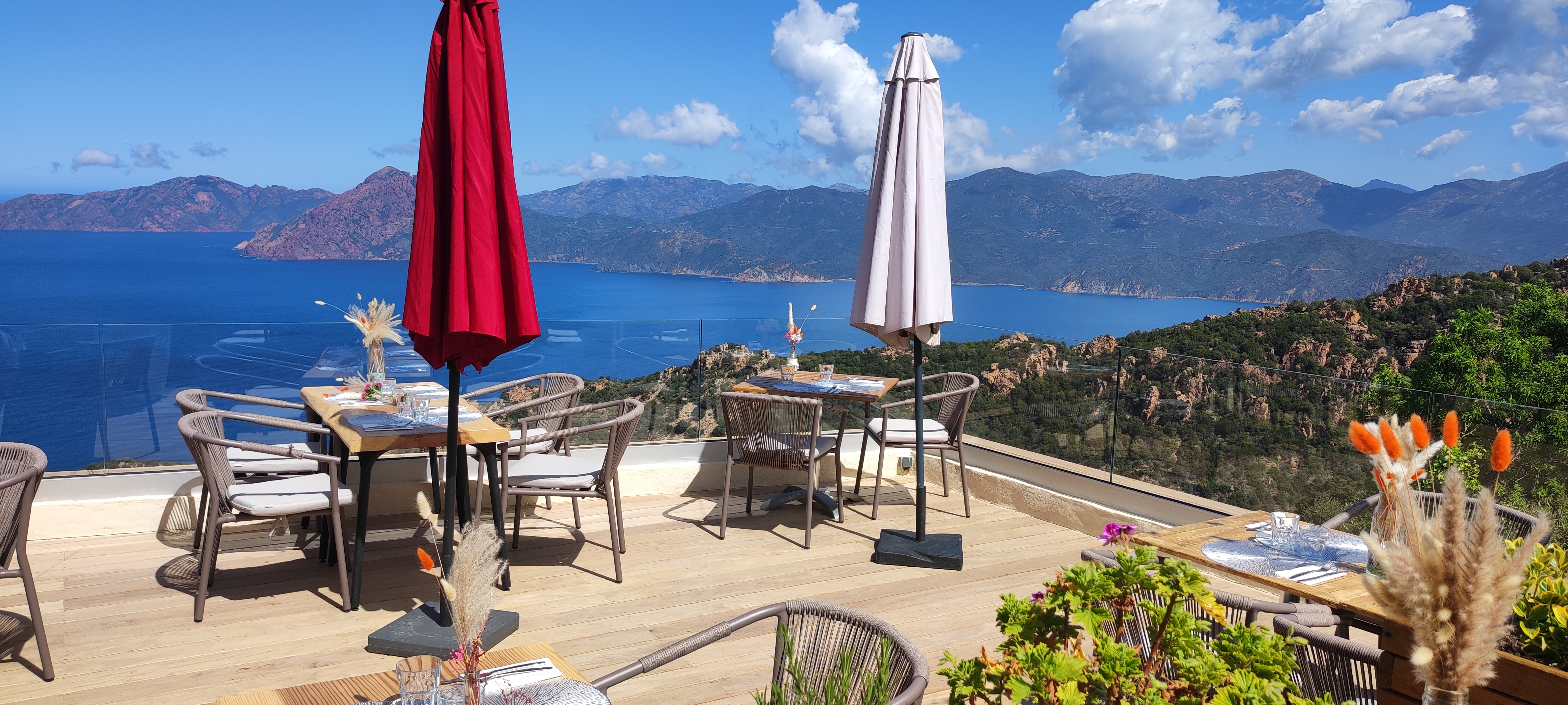 Belle découverte.vue imprenable sur le golfe de Porto . Cuisine raffinée et goûteuse.plats autours de 25 €.accueil au top.
