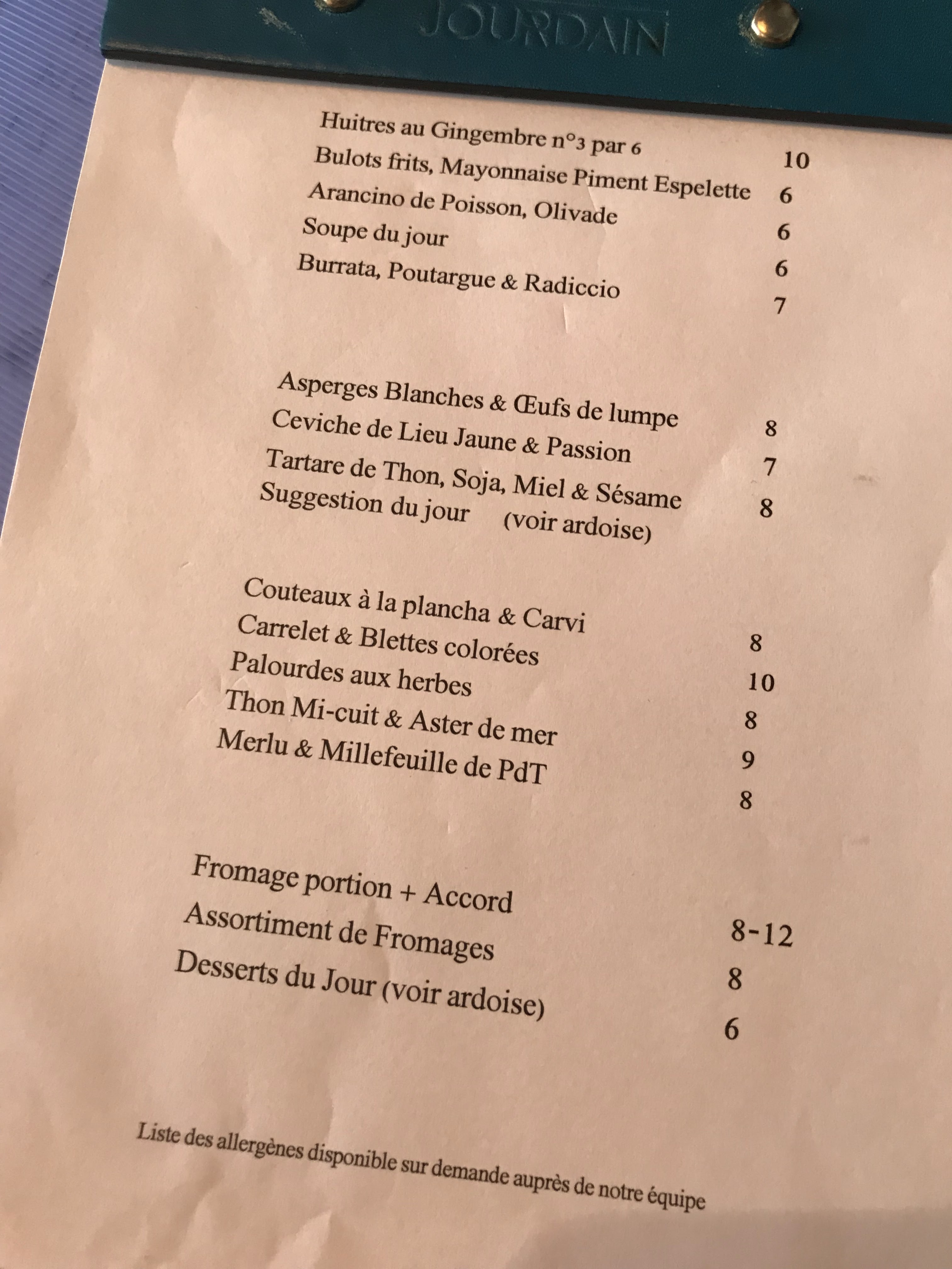 Un très bon restaurant qui remet à l’honneur les caractéristiques du bistrot de grande qualité. Le Jourdain propose pour le déjeuner d’excellents menus à des tarifs très accessibles <18€ ! Un très bon plan qui vaut le détour. Une équipe jeune, dynamique et très sympa qui mérite sons succès. Pour le dîner ou la soirée de son tapas à la Française. Et pour couronne le tout, une carte des vins originales et qui permet de faire de belles découvertes.