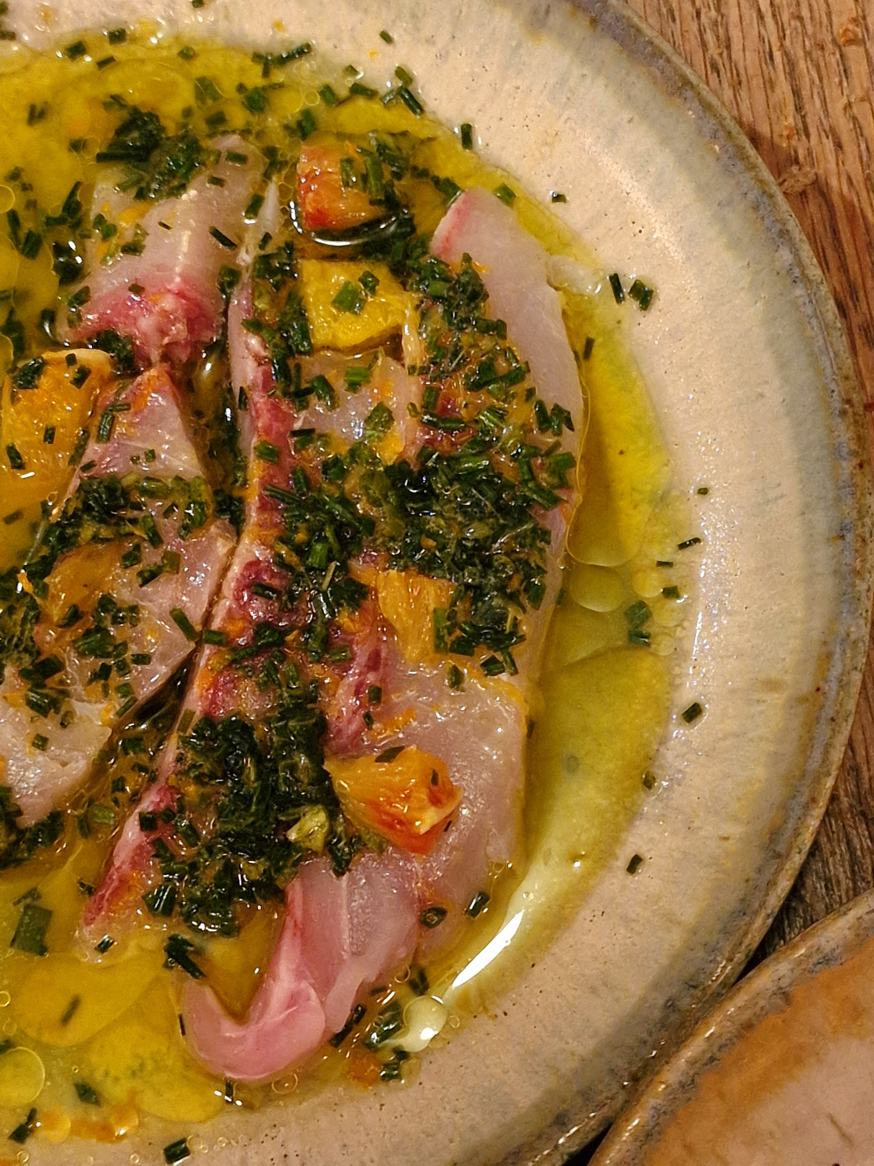 Ce restaurant est candidat à une étoile Michelin, il mérite une étoile. Nous avons eu des Haricot Verts exceptionnellement bien cuits, du carpaccio de céleri-rave (quelle surprise !), des sardines (excellentes), et nous avons terminé avec des Moelleux aux pêches (encore un wow).