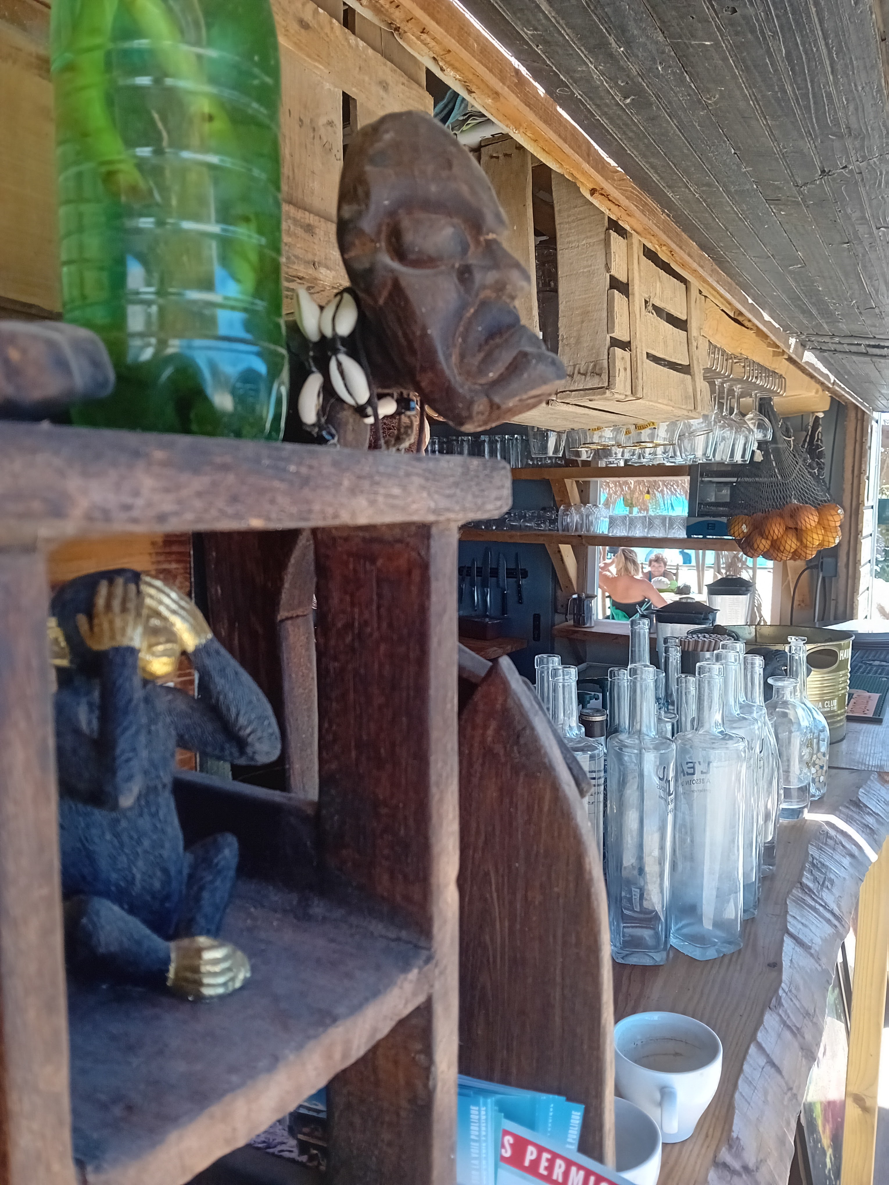 Savourer les bienfaits de la mer et du grand air. Être avec bébé, à l’abri du vent. Être accueillis de manière très sympathique. Se rafraîchir de Délicieux cocktails de jus de fruits frais. Découvrir un lieu original à la décoration évocatrice de la jungle, Des dessins au top ! Une balançoire que j’aimerais bien chez moi, Des hamacs, de vieux meubles hétéroclite qui dans ce cadre évoquent le confort et le bien être, Entendre des sons très cool 😎, Nous avons adoré, ce voyage exotiques hors du temps. Merci 👌