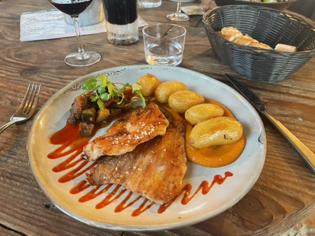 Ambiance du lieu vraiment agréable, dorade et gambas, accompagnement, présentation ,parfait , rien à redire , magnifique banana split ! Serveur sympa , nous avons apprécié de ne pas avoir été pressé , de pouvoir prendre le temps de manger tranquillement . Les différents musiciens assurent , en conclusion : un bon repas ,une bonne soirée ,un bon moment.