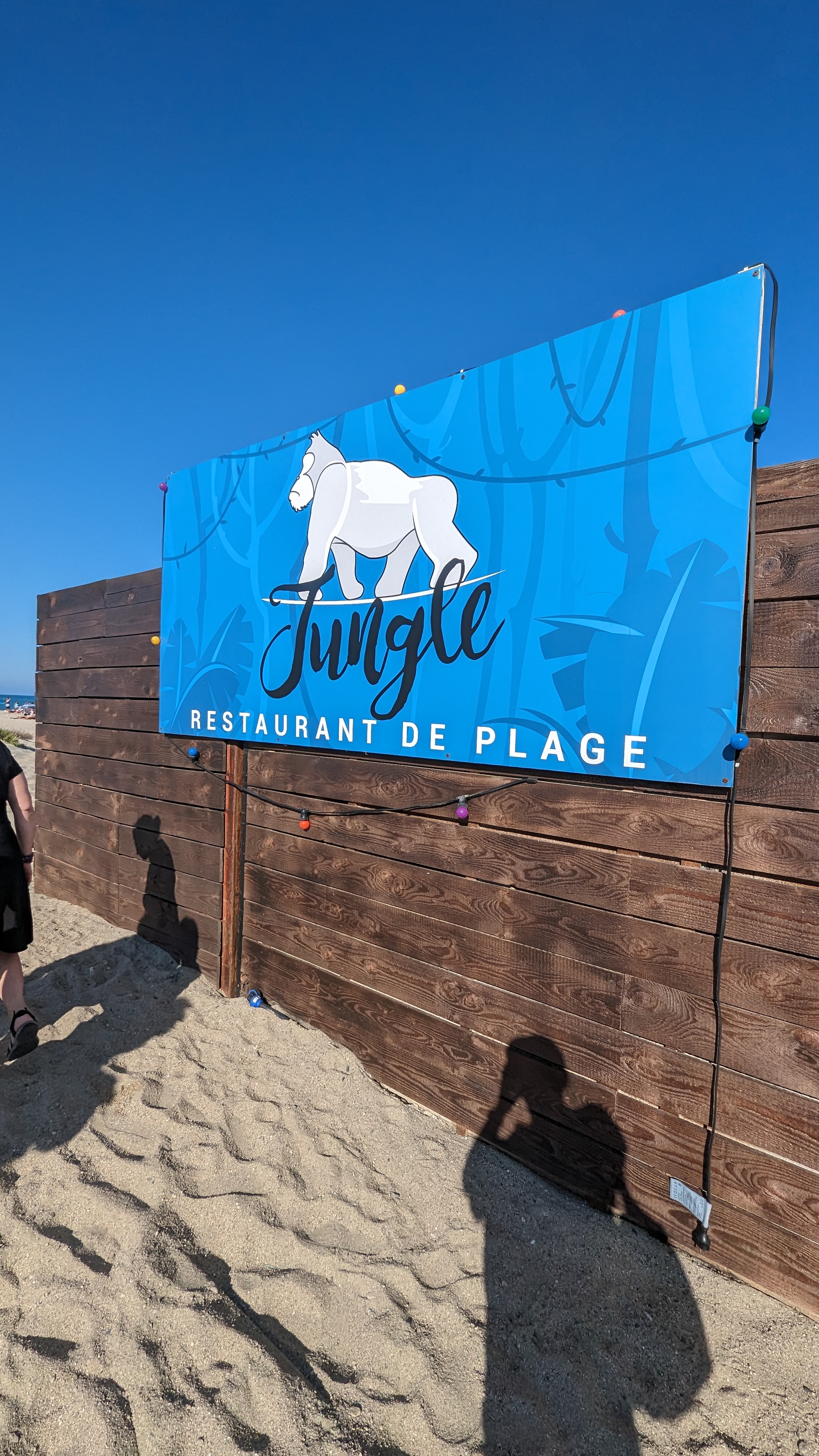 Un bar de plage pas comme les autres où tu prends le temps de profiter. le bar de nos vacances. ❤🧡💛💚💙💜.. merci. Une déco et ambiance très agréable🦍🌴 avec concert plusieurs soirs dans la semaine le tout en bord de mer, les pieds dans le sable. Que se soit pour manger ou simplement boire un verre je vous recommande le jungel sans hésitation. Rapport qualité prix +++ produits frais avec des serveurs super agréable. Ambiance décontracte sans être pousser dehors dès la fin des repas. Au top😋 Bonne fin de saison😉😊💫🧚♀️